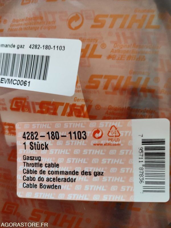 OTHER FR: Date et lieu de visite: Visite possible sur rendez-vous aux services techniques en contactant le 02 35 37 37 27 Etat général: Matériel neuf dans emballage d'origine Vendu dans l'état IMPORTANT: Retrait à la charge de l'acheteur sans aide de la collectivité Caractéristiques techniques: 3 câbles commande de gaz STIHL 4282-180-1103 pou BR 500/550/600. 1 câble commande gaz STIHL 4282-180-1105 Type produit: Lot de 4 câbles de commande de gaz de marque STIHL Ref No:NK48866