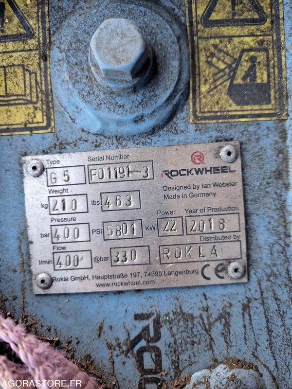 Rockwheel G5 Weight: 210 FR: Date et lieu de visite: SUR RDV Etat général: Très bon état IMPORTANT: VENTE EN L'ÉTAT Prix d'achat: 22000 Type de matériel: FRAISE Fraise marque ROCKWHEEL model G5 Poids 210 kg Porteur 8-10 Fiche technique en pièce jointe Valeur neuf 22 000€ Matériel jamais servi Ref No:YK48938