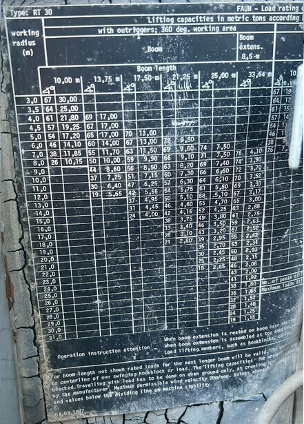 Obtenez un rapport d'inspection détaillé pour 1987 Faun RT30 et achetez en toute tranquillité d'esprit.