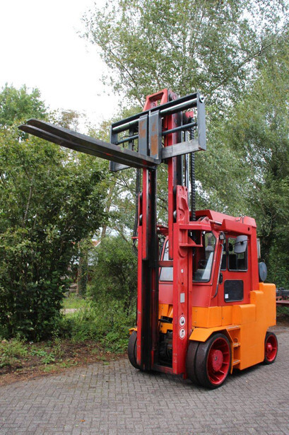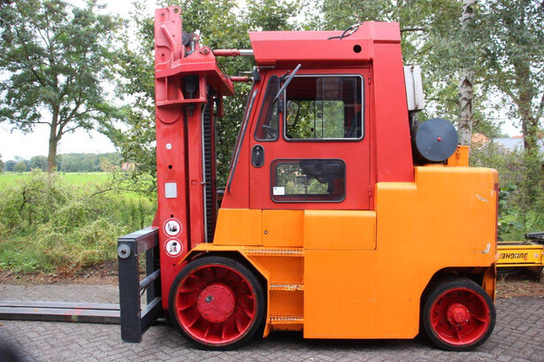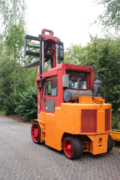 Brand: Pope Type: PGS 16 Serial number: PGS16-17162 Year of construction: 1997 Fuel: Diesel Mast type: Duplex Sideshift: Yes Lifting capacity: 16000 kg Lifting height: 4000 mm Operating hours read: 74062 h Tires: Solid tires Color: red