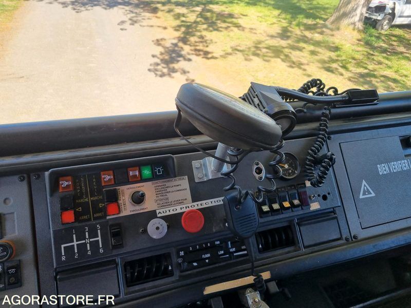 FR: Date et lieu de visite: SANS Etat carrosserie: Correct, corrosion ailes AV Etat intérieur: BON Etat des pneus: BON Climatisation: non Version: 12T Etat moteur boite pont: BON Dernier passage aux mines: 19/03/2024 Véhicule 4x4 doté d'un treuil Pompe 1500 l/min sous 15 bars Citerne 4000 litres Véhicule roulant moteur tournant
