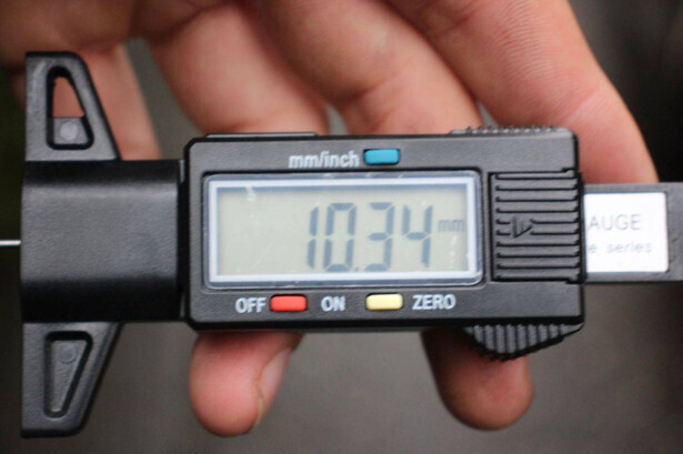 Tyres: Front left: 10.34 mm Left center: 10.01 mm Left rear: 10.14 mm Right rear: 7.24 mm Right center: 12.15 mm Front right: 7.76 mm