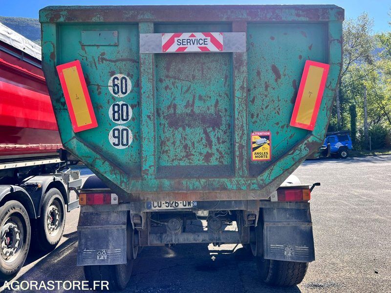 Metaco SD233 Axle number: 2 Axle 1 common tyre size: 445/65R22.5 FR: Date et lieu de visite: SUR RDV (73) IMPORTANT: VENTE EN L'ÉTAT Etat des pneus: 50% PV / PTAC / PTRA: PV 5,9T / PTAC 33T Type de remorque: Semi-remorque benne Dernier passage aux mines: 26/03/2025 SEMI REMORQUE BENNE 2 ESSIEUX 33T 28m3 METACO SD233 Immatriculation CQ-526-QW Mise en circulation 01/08/2001 PTAC 33T - Poids à vide 5,9T CT OK valable jusqu'au 25/03/2026 Porte arrière hydraulique Pneux 445/65R22.5 Freins à tambours Suspensions à lames Ref No:AJ48859 VIN: VNPSD233T11AX0005