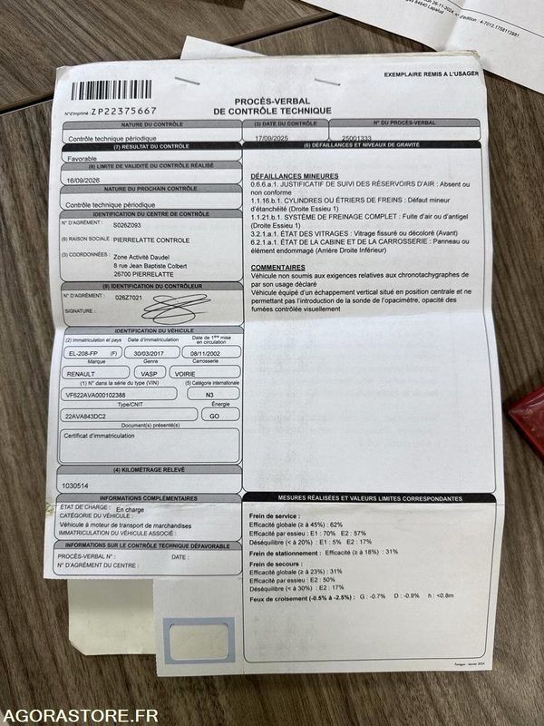 Renault PREMIUM Fuel: gas FR: IMPORTANT: Voir rapport d'inspection en pièce jointe Voir rapport d'inspection en pièce jointe Ref No:RN49171 VIN: VF622AVA000102388