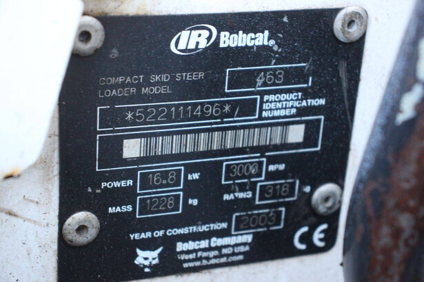 Brand: Bobcat Type: 463 Year of construction: 2003 Serial number: 522111496 Fuel: Diesel Engine power: 16.8 kW Operating hours read: 1678 h Machine weight: 1228 kg Chassis: Wheels Color: white