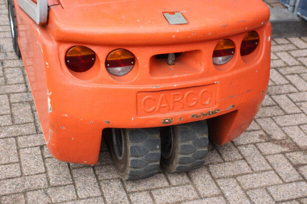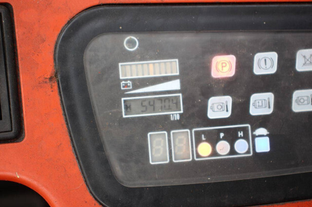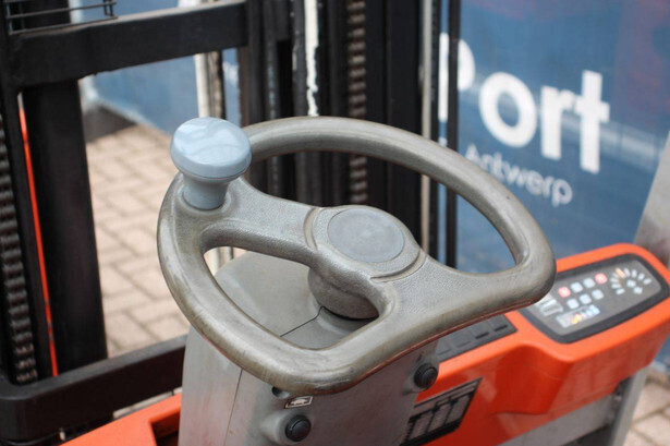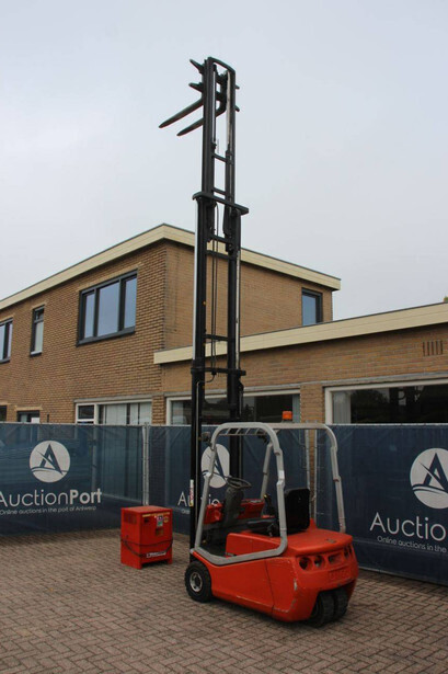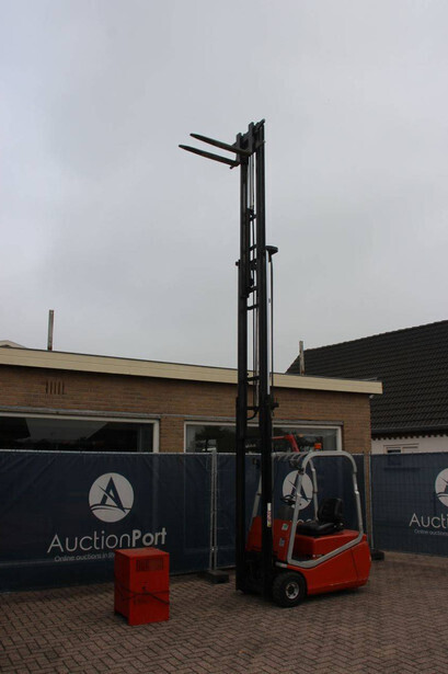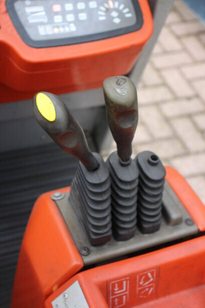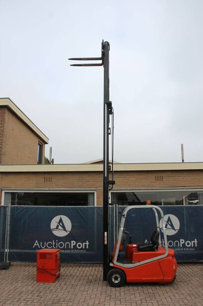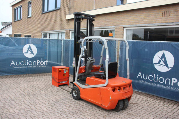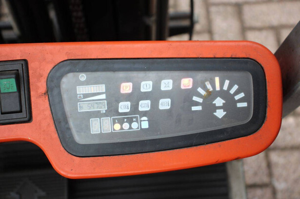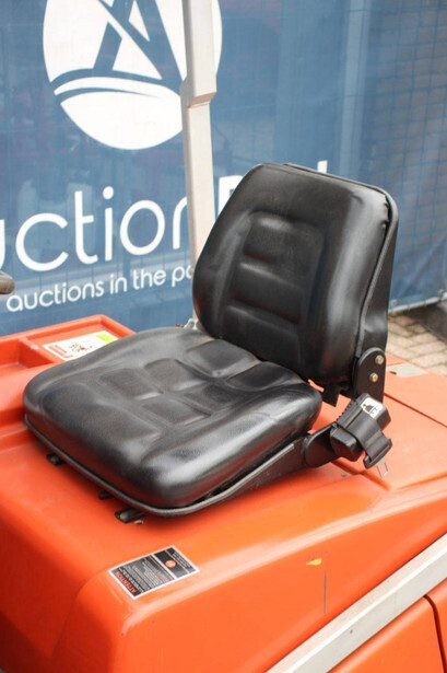 Brand: BT Type: CB 15 Y Serial number: CE36074 Year of construction: 2000 Fuel: Electric Mast type: Triplex Sideshift: No Lifting capacity: 1500 kg Lifting height: 6200 mm Operating hours read: 5470 h Machine weight: 4575 kg Tires: Solid tires Color: orange Options: Driving lights Electronic display Including charger Machine description: Machine starts, drives, lifts and lowers.
