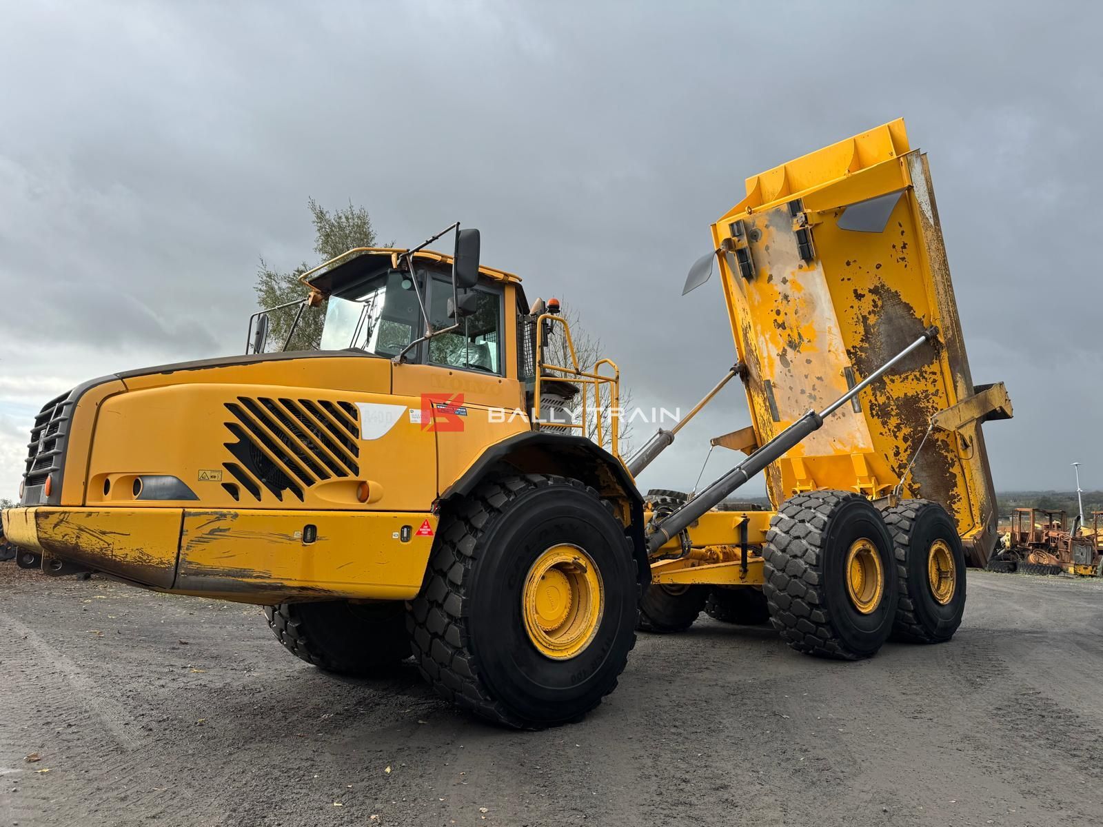 Volvo A40D Dump Truck for sale, Used Dumper, 6X6 Volvo Wheel Dumper, Year 2006, A40D Model with 31,723 hours on clock. Dumptruck with 29.5R25 tyres, the front tyres are 70-80% good & rear are 70-80% good, Volvo Engine – D12, had a rebuilt engine and new transmission @ 18,000 hours in 2017. Complete with Tail Board, Reverse Camera, Reverse Beeping, Auto Greaser, Beacon, Air Seat, Air conditioning and Radio. This Volvo A40D is a very original machine with good work body, Mechanically all seems fine. Comes as per images, nothing more and nothing less. Original paint and in good condition. 6X6 Articulated Volvo Dumptruck, Volvo A40D Dump Truck. Volvo A40D Articulated Haulier. This Volvo Dump Truck can go straight to work, You will not find a cleaner A40D dumper on the market. Cheap Volvo dumper for sale. Weight 31,270KG, Volvo A40D.