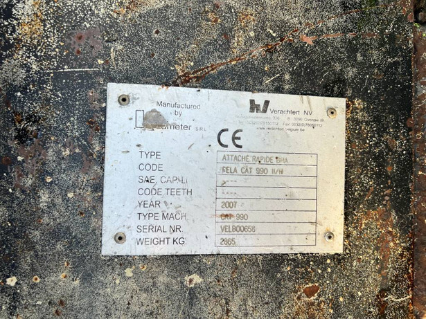 Used Verachtert quick coupler suitable for Caterpillar wheelloaders 990H / 990K.