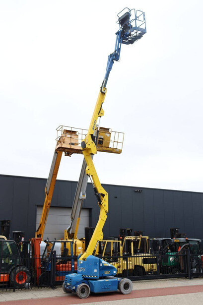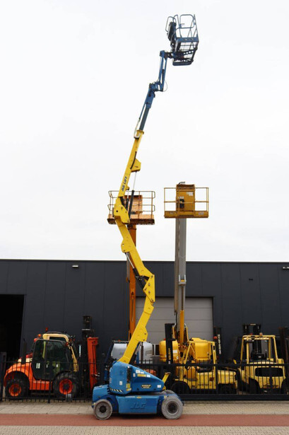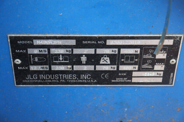 Brand: JLG Type: M400AJPN Serial number: 0300122810 Year of construction: 2007 Fuel: Electric + Diesel Lifting capacity: 230 kg Working height: 14.19 m Operating hours read: 393 h Machine weight: 6349 kg Chassis: Wheels Type: Articulated boom lift Tires: Solid tires Color: blue