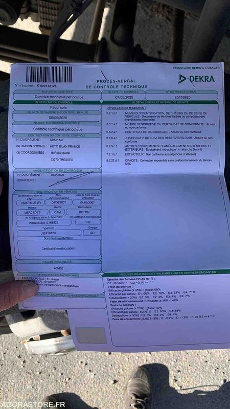 Obtenez un rapport d'inspection détaillé pour 2007 Mercedes-Benz 3241 et achetez en toute tranquillité d'esprit.