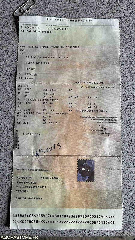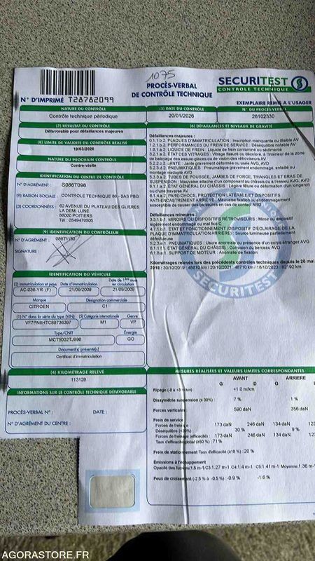 Citroen C1 Color: white Power: 54 Engine volume: 1398 Fuel: gas Axle 1 common tyre size: 165/65/14 75T Gearbox type: manual FR: Type de véhicule BERLINE Nb portes: 5 Etat carrosserie: Correcte Etat des pneus: Bon Transmission: AVANT Version: 1.4 HDI Etat soubassements: Bon Par choc arrière dégrafé ,nettoyage intérieur présence d’eau dans le coffre Véhicule roulant Moteur tournant Un rapport d'inventaire est fourni dans la rubrique « documents » Ref No:UL49494 VIN: VF7PN8HTC89736397