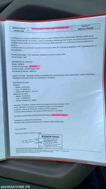 FR: Type de véhicule BUS-CAR ROULANT MOTEUR TOURNANT Voir rapport PJ