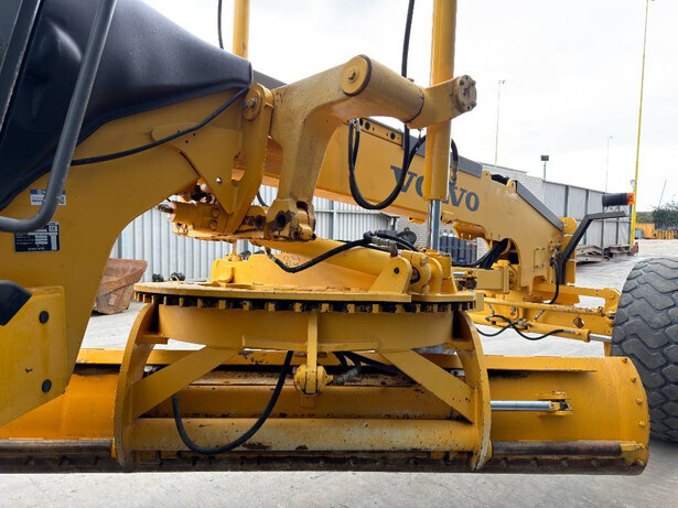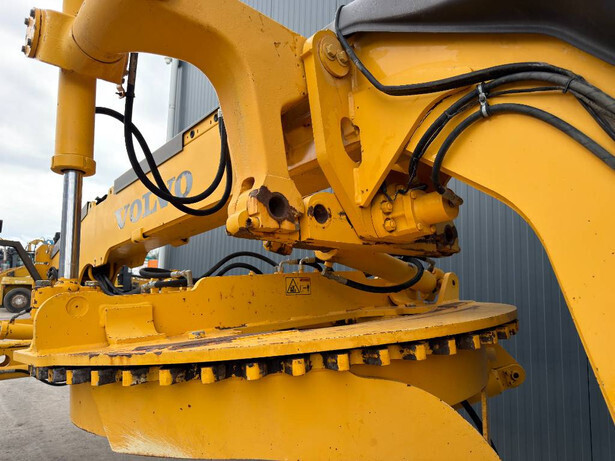 The Volvo G930 Motor Grader is equipped with a powerful Volvo D7E GCE3 engine delivering 150 kW of power. It meets EPA and CE specifications, ensuring it adheres to strict environmental and safety standards. This 2010 model has been used for 8465 hours and remains in very good and clean condition. It features a 6×4 drive, a ripper, and a hydraulic tip control with a center blade width of 4.27 meters. With differential unlock capabilities, a beacon, and available extensions, this grader is versatile for various heavy-duty applications. Made in Canada, it weighs 17,650 kg and measures 9.55 x 2.74 x 3.21 meters.