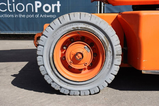 Brand: JLG Type: E400AJPN Serial number: 0300152813 Year of construction: 2011 Fuel: Electric Lifting capacity: 230 kg Working height: 14.19 m Operating hours read: 1079 h Machine weight: 6847 kg Chassis: Wheels Type: Articulated boom lift Tires: Non-marking tires Color: orange