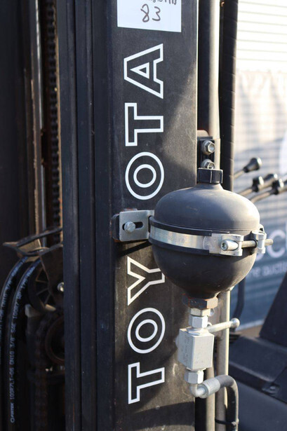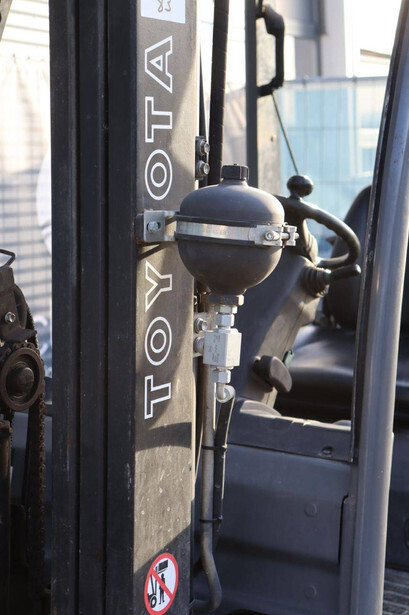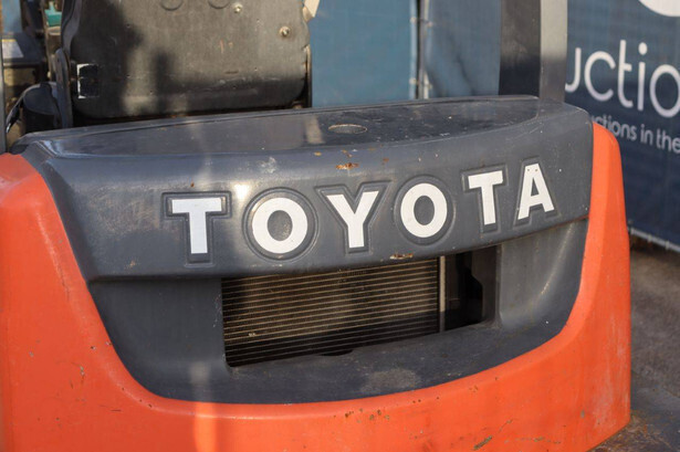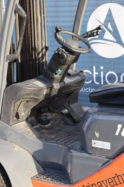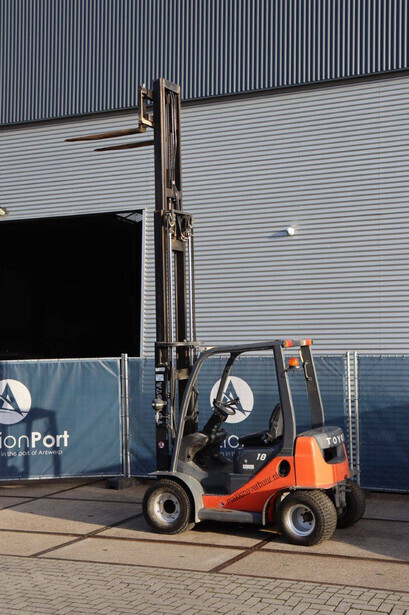 Brand: Toyota Type: FD18 Serial number: 608FD18-31812 Year of construction: 2011 Fuel: Diesel Mast type: Triplex Sideshift: Yes Lifting capacity: 1000 kg Lifting height: 4700 mm Operating hours read: 11943 h Machine weight: 2560 kg Tires: Pneumatic tires Color: orange