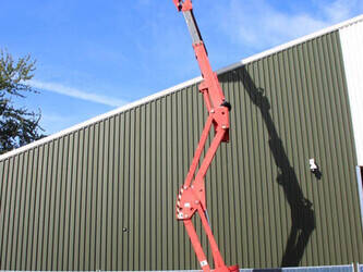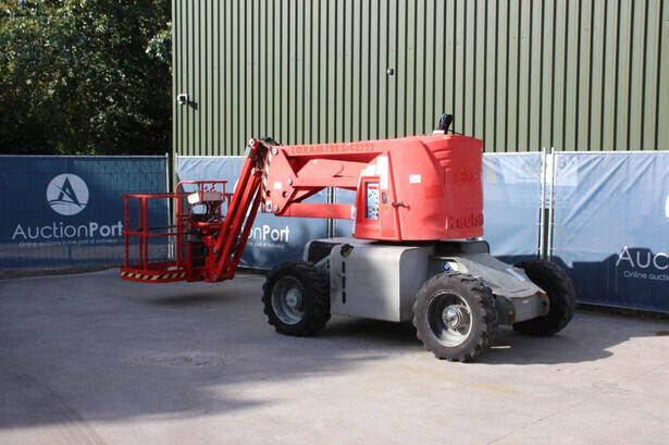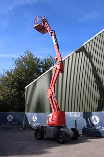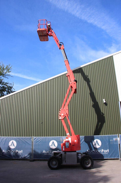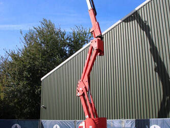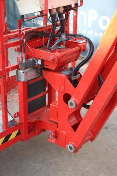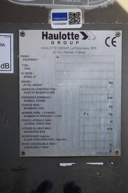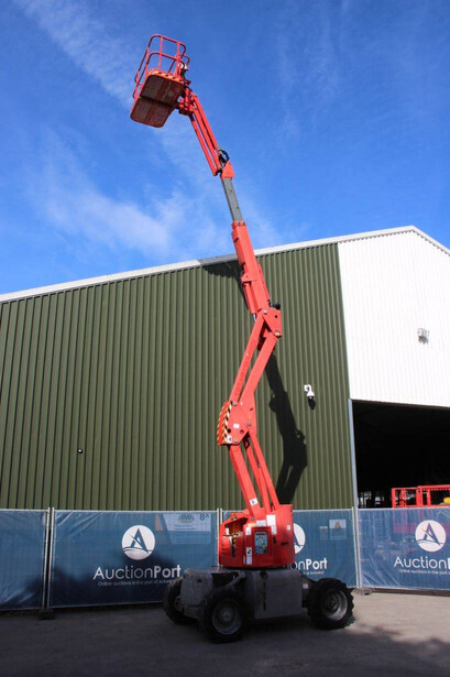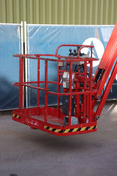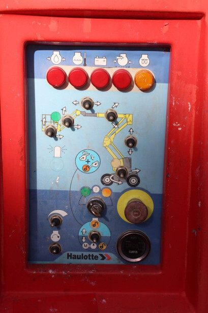Brand: Haulotte Type: HA120PX Serial number: AD123776 Year of construction: 2012 Fuel: Diesel Lifting capacity: 230 kg Working height: 12.4 m Operating hours read: 3407 h Machine weight: 5620 kg Chassis: Wheels Type: Articulated boom lift Tires: Solid tires Color: red
