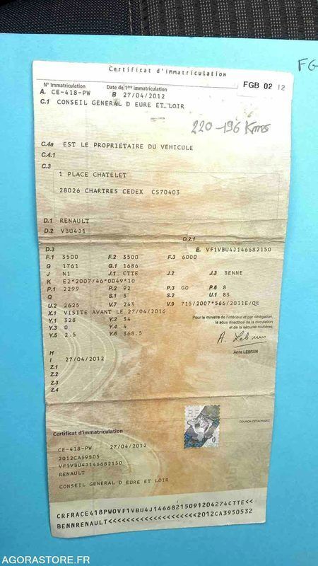 Renault MASTER Power: 125 Engine volume: 2299 Fuel: diesel Axle 1 common tyre size: 225/65R16C Gearbox type: manual FR: Type de véhicule BENNE BASCULANTE Nb portes: 2 Transmission: AVANT Version: 2.3 DCI Véhicule roulant Moteur tournant Un rapport d'inventaire est fourni dans la rubrique « documents » Ref No:415762 VIN: VF1VBU4J146682150