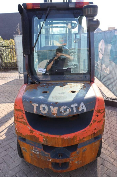 Brand: Toyota Type: 02-8FDF30 Serial number: 40406 Year of construction: 2012 Fuel: Diesel Mast type: Not known Sideshift: Yes Lifting capacity: 3000 kg Lifting height: Not known Operating hours read: Not known Tires: Solid tires Color: orange