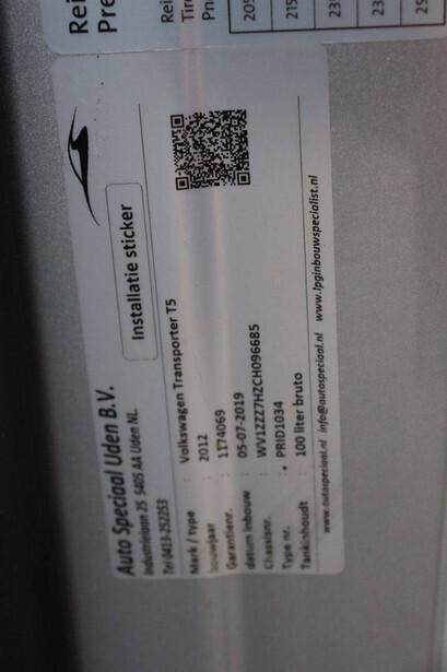 Brand: Volkswagen Model: Transporter T5 Chassis number: WV1ZZZ7HZCH096685 Date of first registration: 2012 Fuel: LPG + Petrol Engine power: 116 HP Transmission: Manual Cylinder capacity: 1984 cc Odometer reading: 283964 KM Color: gray