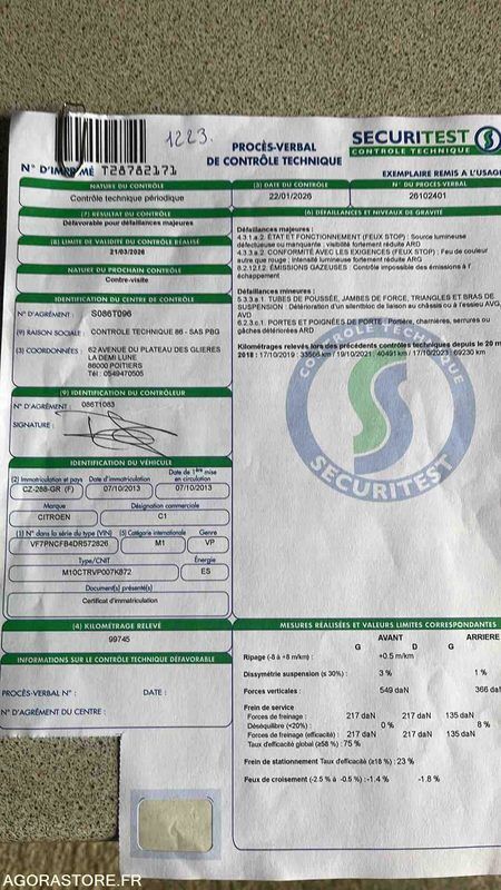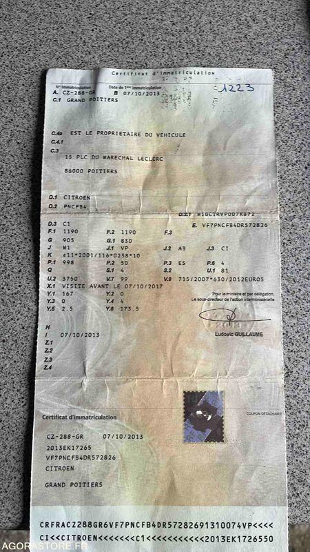 Citroen C1 Color: white Power: 68 Engine volume: 998 Fuel: petrol Gearbox type: manual FR: Type de véhicule BERLINE Date et lieu de visite: Sur rendez-vous IMPORTANT: Voir rapport d'inspection en pièce jointe Nb portes: 5 Transmission: AVANT Version: 1.0 12V Voir rapport d'inspection en pièce jointe Ref No:ZL49494 VIN: VF7PNCFB4DR572826