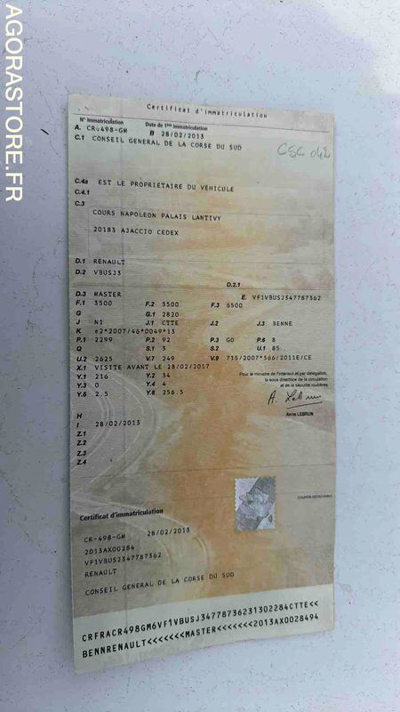 Renault MASTER Color: blue Power: 125 Engine volume: 2299 Fuel: diesel Axle number: 2 Gearbox type: manual Overall height: 1.81 Overall length: 4.28 Overall width: 1.83 FR: Type de véhicule BENNE BASCULANTE Nb portes: 4 Transmission: AVANT Version: 2.3 DCI Véhicule non roulant Moteur tournant Un rapport d'inventaire est fourni dans la rubrique « documents » Ref No:414158 VIN: VF1VBUSJ347787362