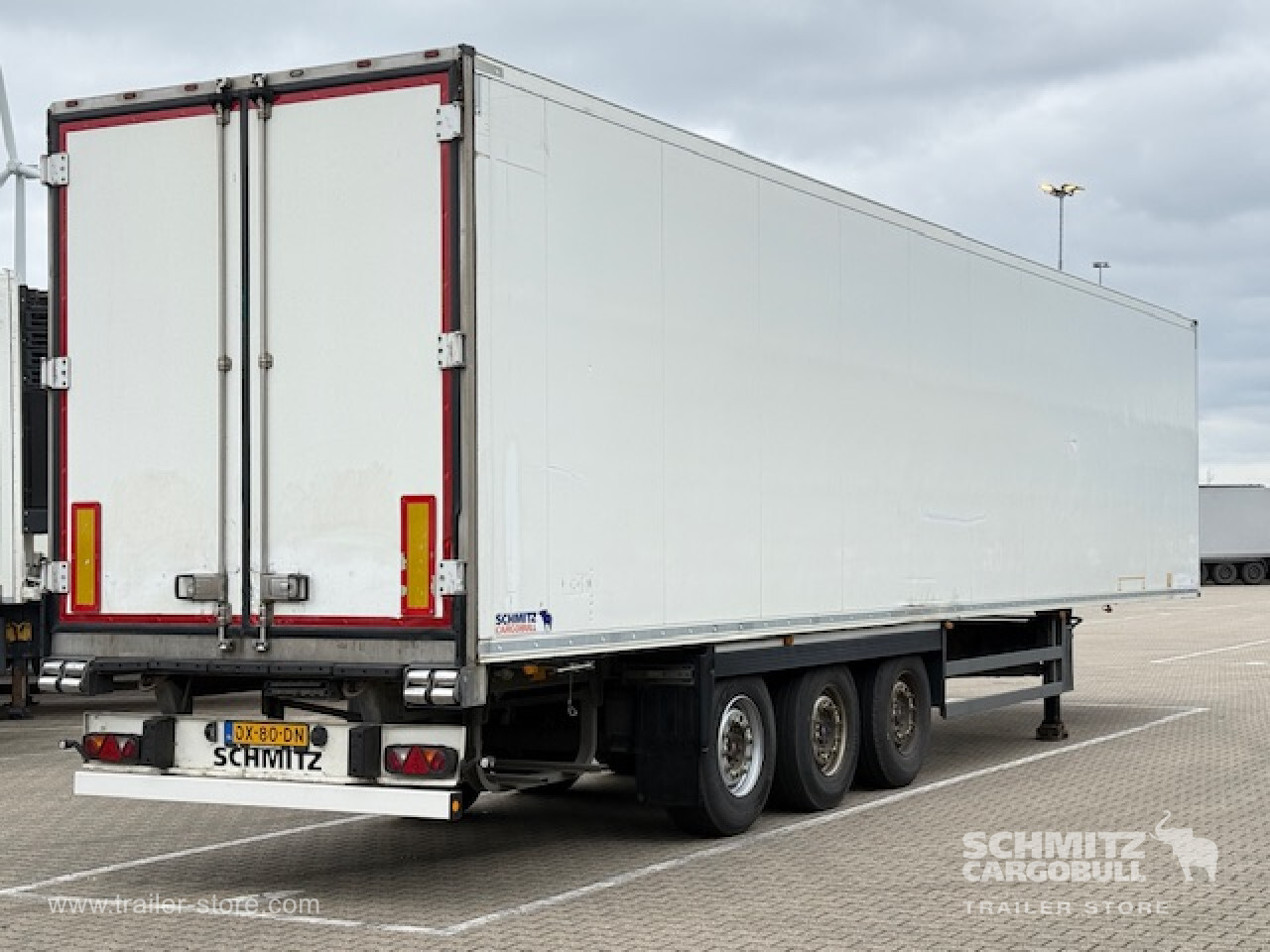 Remarks: **Safety**\\Rear underrun, Antilock Braking System ABS\\\\**Exterior**\\Air suspension, Spare wheel carrier, 1x15 and 2x7 pin plug, Antispray\\\\**Cargo securing**\\Load securing rail\\\\**Brake system**\\Disc brake, SAF\\\\**Wall**\\Wall thickness45 mm\\\\**Cooling unit**\\Thermoking SLX E 300, Diesel/Elektro, 20.653 Operating hours Diesel, 14.262 Operating hours electric\\\\**Loading area**\\Length 13.410 mm, Width 2.490 mm, Height 2.650 mm, Volume 88 m³\\\\**Tyre sizes**\\ 385/65 22.5 , 385/65 22.5 , 385/65 22.5\\\\**Other dimensions and weights**\\Payload: 30.160 kg, GVW: 39.000 kg\\\\----