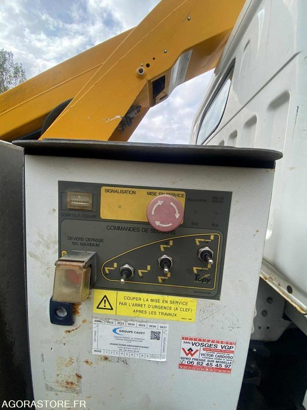 Nissan CABSTAR Power: 122 Engine volume: 2488 Fuel: gas Gearbox type: manual FR: Type de véhicule Nacelle Dimensions (Longueur, Largeur, Hauteur): 12 m de haut Transmission: ARRIERE Version: 2.5 DCI NISSAN CABSTAR 22/08/2014 « -« -« -« -« -« -« Entretien à jour Distribution à Chaîne « -« -« -« -« -« -« Double des clés Hauteur de levage : 12 m Nombres de personne : 2 Charge utile 130 kg Bras télescopique avec orientation à 360 degrés Poste de commande de secours au sol 2 coffres à outils 110 x 34 x 35 cm en acier inox Ref No:FM49272 VIN: VWASUFF24E4165909