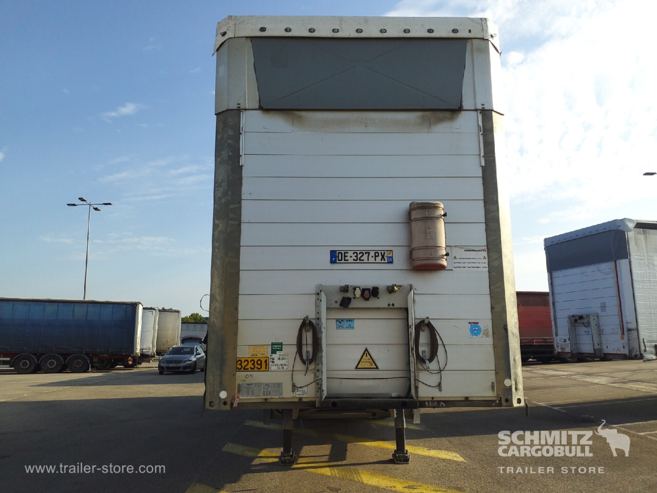Remarks: **Safety**\\Rear underrun, Antilock Braking System ABS, Fire extinguisher holder\\\\**Exterior**\\Air suspension, Toolbox, Bolted chassis, Sliding roof, 1x15 and 2x7 pin plug, Antispray\\\\**Cargo securing**\\Cargo securing with certificate, DIN EN 12642 (code XL) certificate, Punched load securing side rave, Wooden - support slats\\\\**Brake system**\\Disc brake, Schmitz ROTOS\\\\**Floor**\\Wooden floor, Lashing rings in floor\\\\**Loading area**\\Length 13.620 mm, Width 2.480 mm, Height 2.900 mm, Volume 97 m³\\\\**Tyre sizes**\\1. Achse: 385/55 R22.5 , Tread depth: 6 mm / 4 mm, 2. Achse: 385/55 R22.5 , Tread depth: 8 mm / 7 mm, 385/55 R22.5\\\\**Other dimensions and weights**\\GVW: 38.000 kg\\\\----Disques de frein Essieu 1 reste 40mm Plaquettes usure 50%Disques de frein Essieu 2 reste 39,5mm Plaquettes usure 40%Disques de frein Essieu 3 reste 40,5mm Plaquettes usure 20%Mines : -