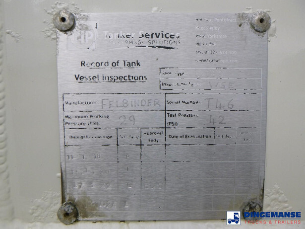 NON DUTY FREE, REQUIRES CUSTOM CLEARANCE // Aluminium powder tank / cement silo with compressor, Capacity 40000 liters, 1 Compartment, Year of construction 2015, Test pressure 3.0 bar, Max working pressure 2.0 bar, Engine/compressor, Air suspension, BPW axles, Alloy wheels, Lift axle, Steering axle, ABS, Disc brakes, Shipment dimensions 1075x250x360 cm
