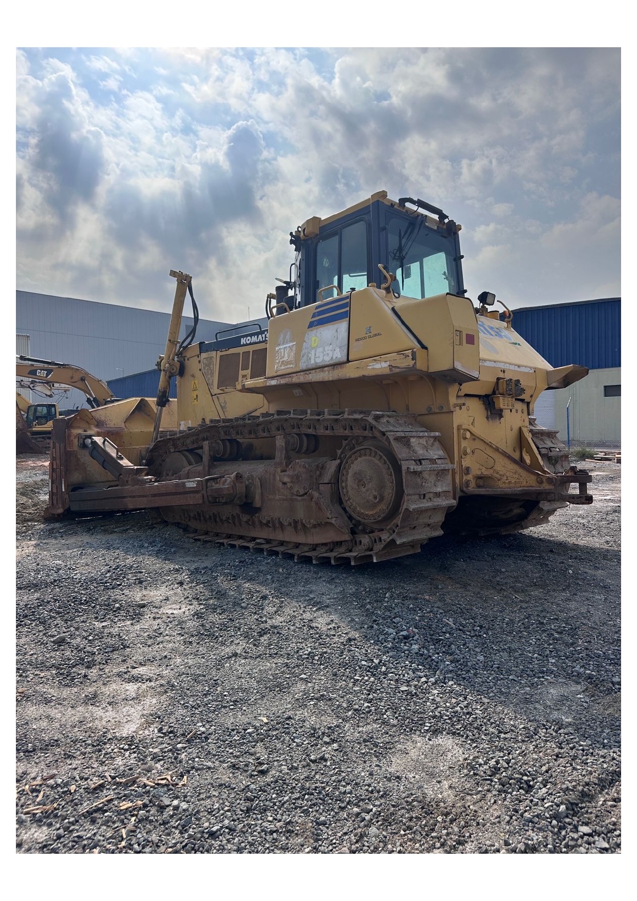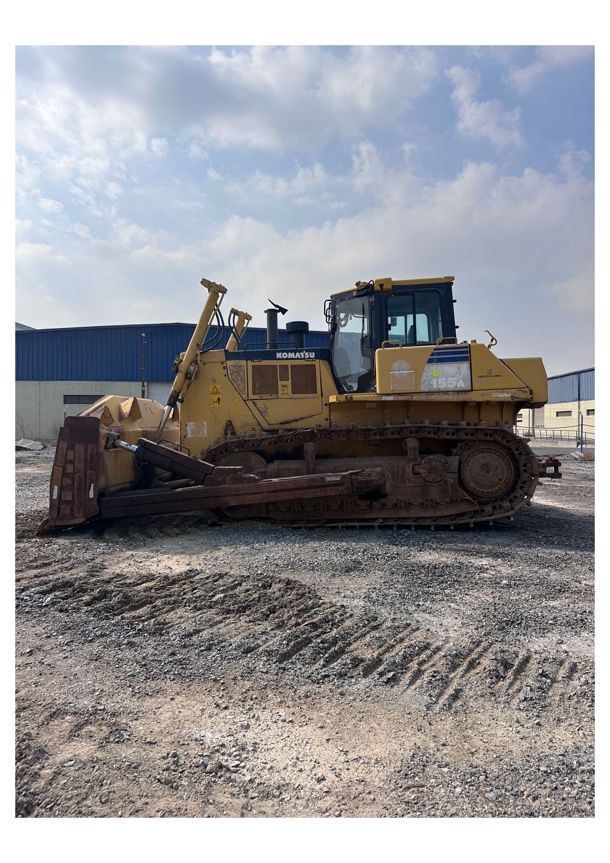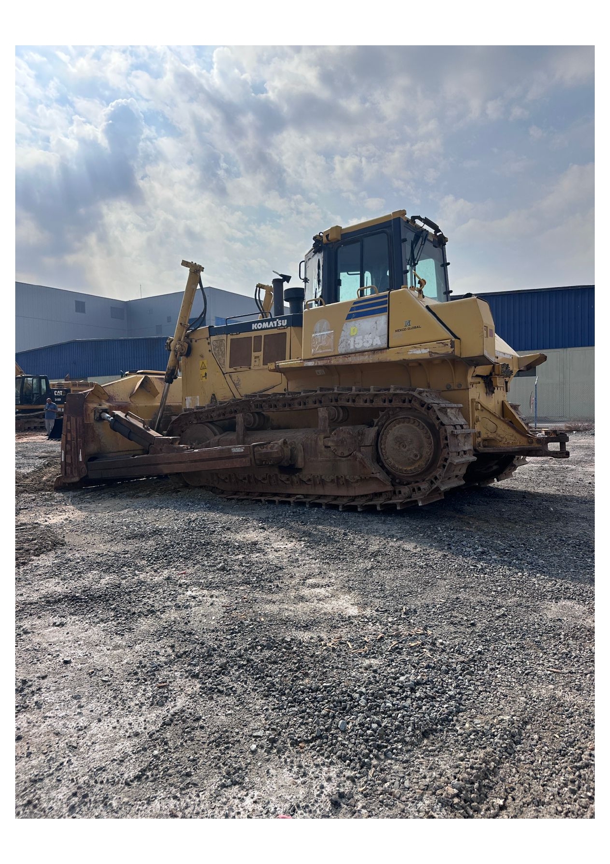 The Komatsu D155 is a big bulldozer — a heavy machine with tracks (like a tank) and a large blade in front.