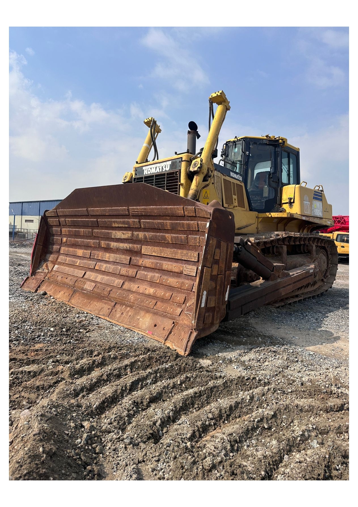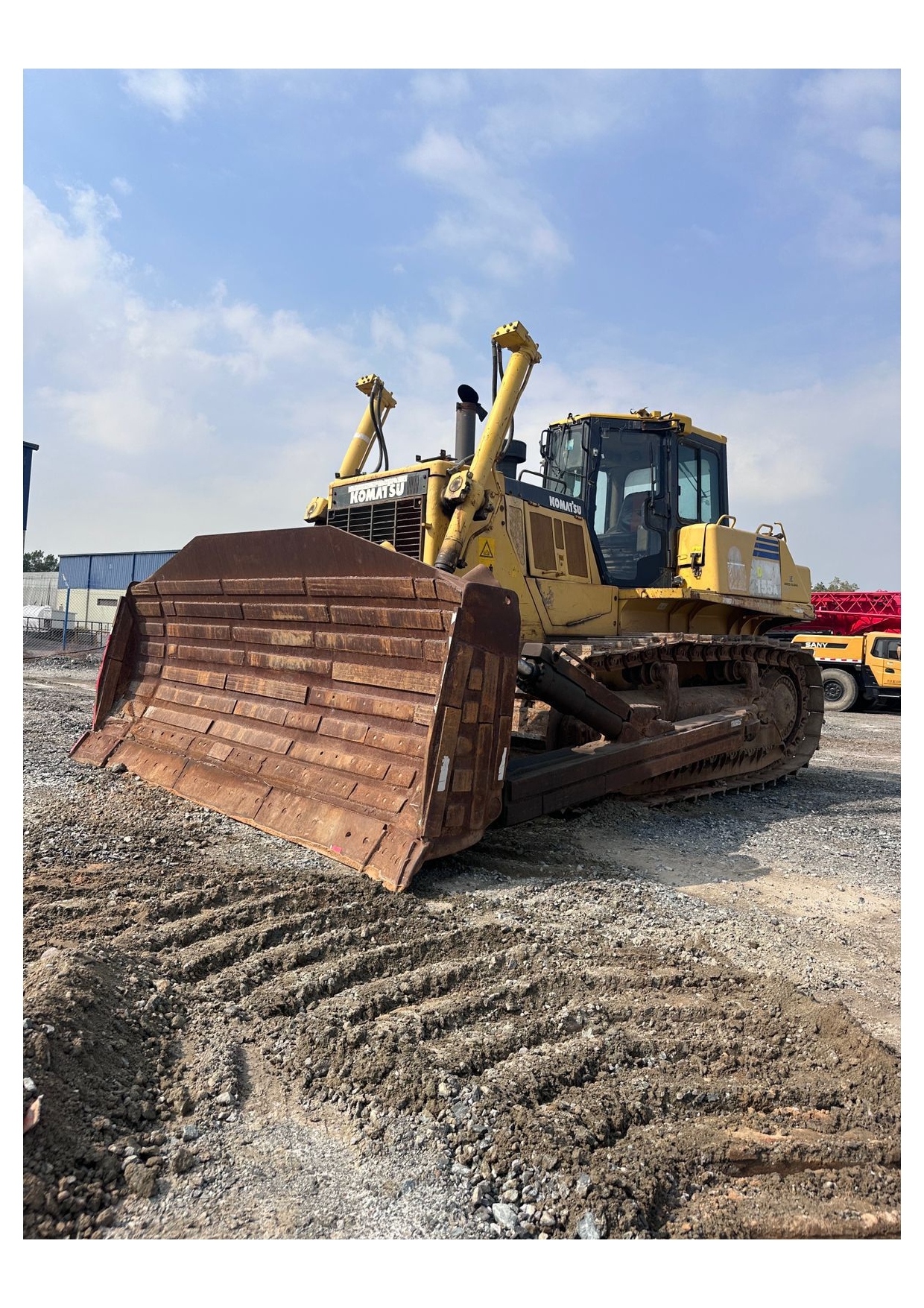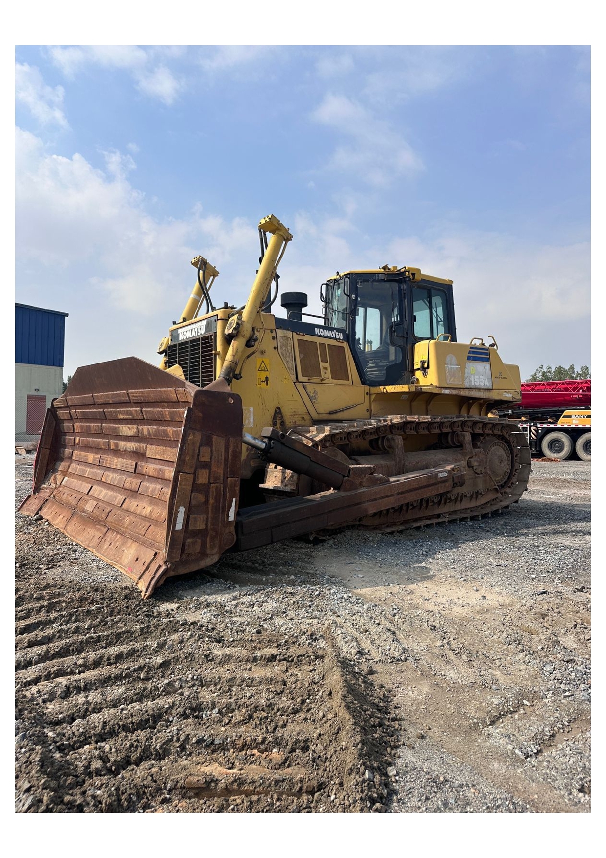 The Komatsu D155 is a big bulldozer — a heavy machine with tracks (like a tank) and a large blade in front.