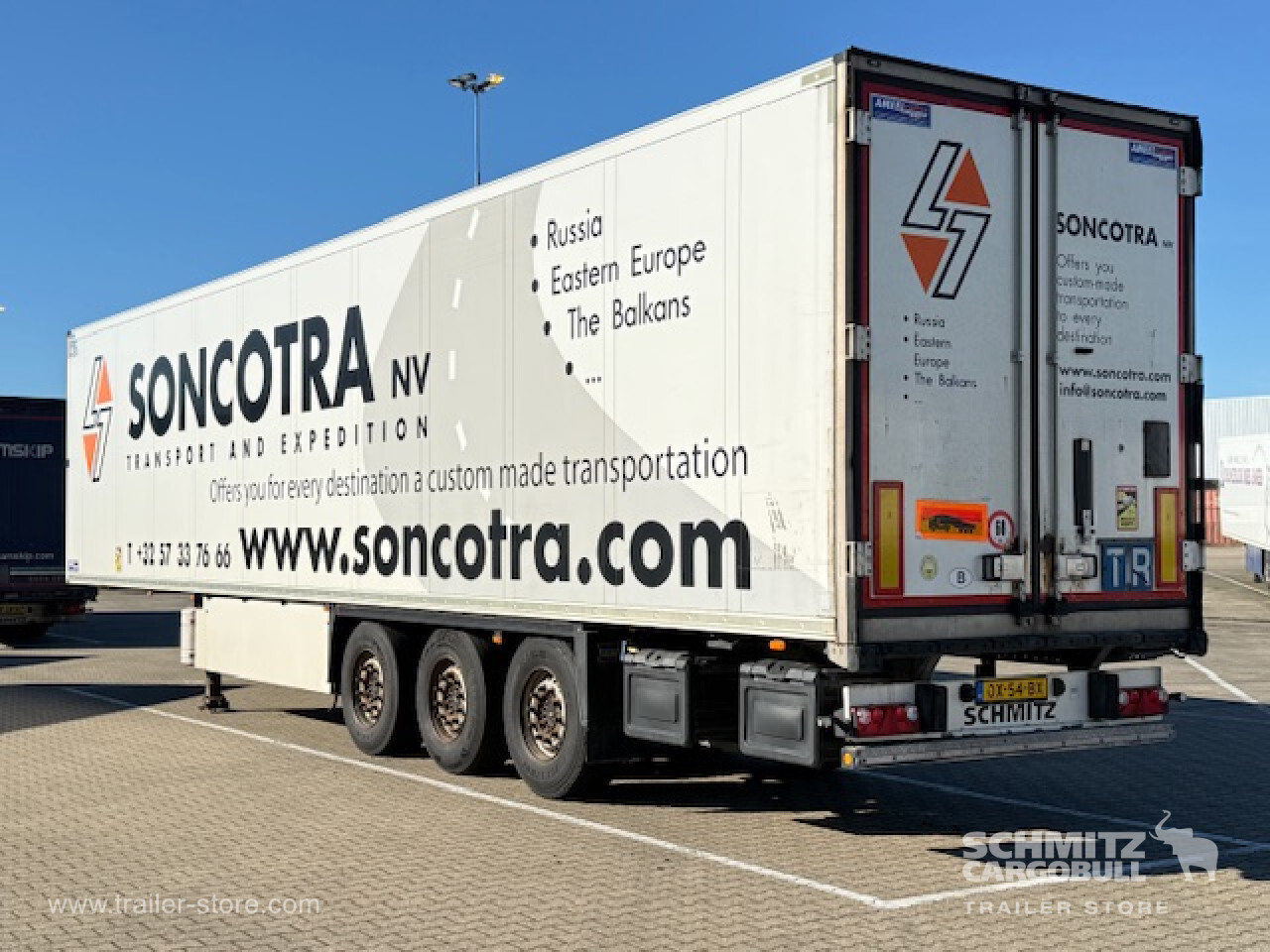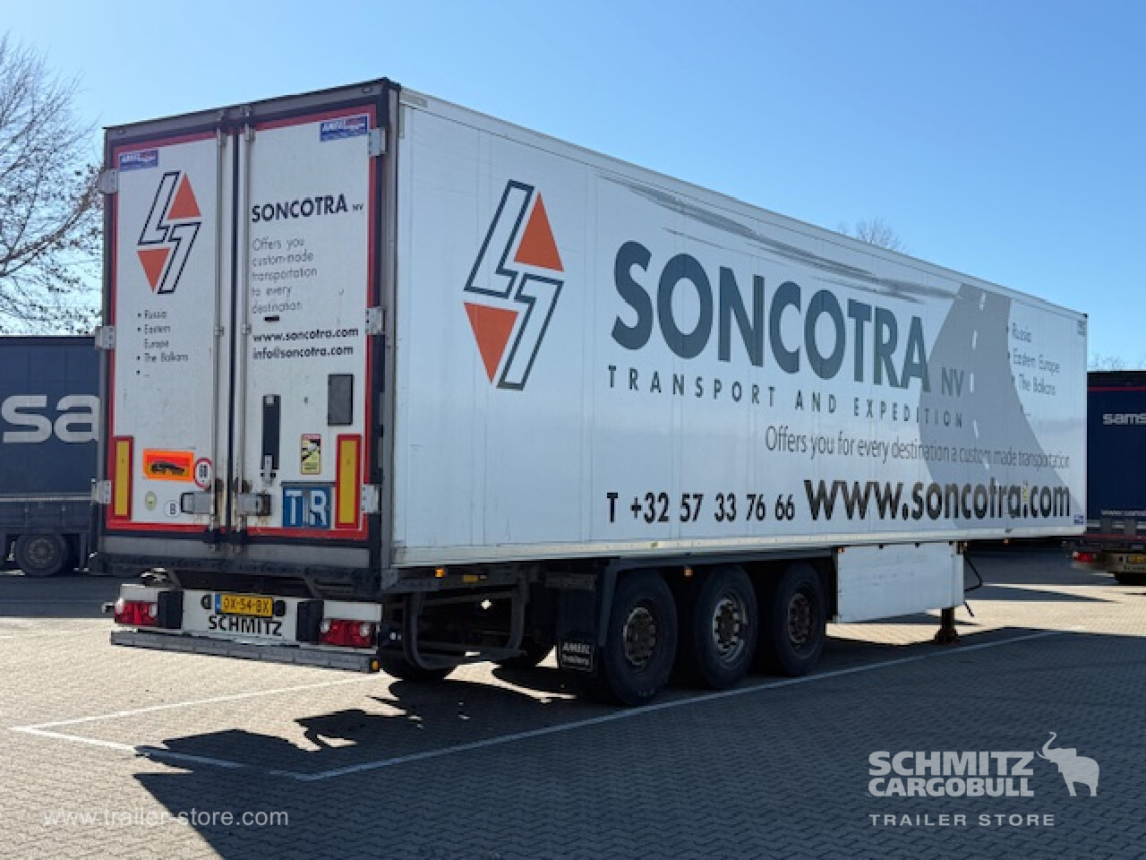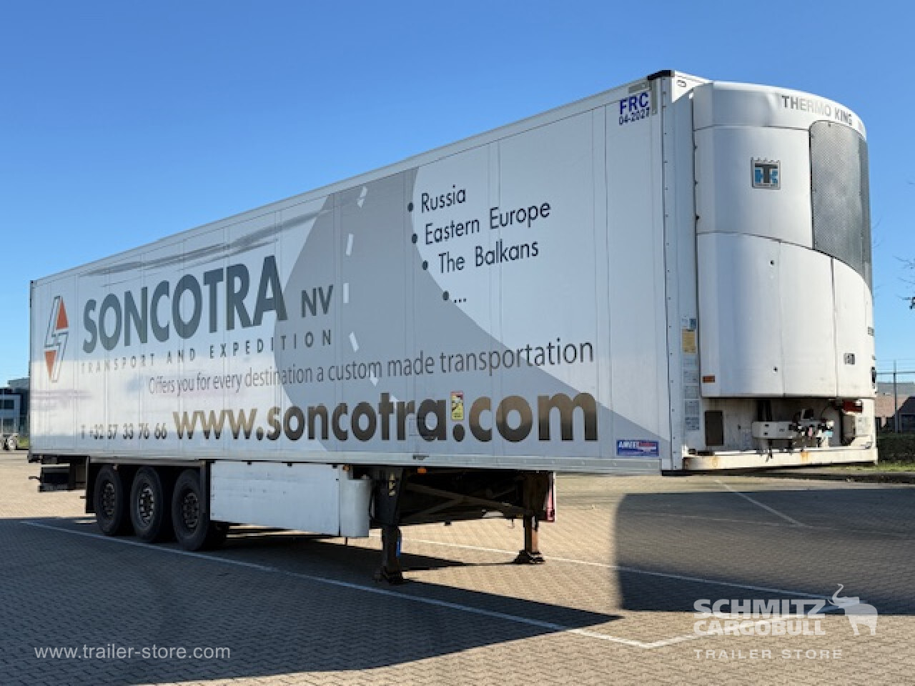 Remarks: **Safety**\\Rear underrun, Antilock Braking System ABS\\\\**Interior**\\ISO partition wall without ventilators, Double deck\\\\**Exterior**\\Air suspension, Pallet box, Toolbox 2x, Spare wheel carrier, 1x15 and 2x7 pin plug, Antispray\\\\**Brake system**\\Disc brake, Schmitz ROTOS\\\\**Floor**\\Aluminum floor\\\\**Wall**\\Wall thickness60 mm\\\\**Cooling unit**\\Thermoking SLXe Spectrum, Diesel/Elektro, 28.972 Operating hours Diesel, 598 Operating hours electric\\\\**Loading area**\\Length 13.410 mm, Width 2.460 mm, Height 2.650 mm, Volume 87 m³\\\\**Tyre sizes**\\ 385/65 22.5 , 385/65 22.5 , 385/65 22.5\\\\**Other dimensions and weights**\\Payload: 30.039 kg, GVW: 39.000 kg\\\\----