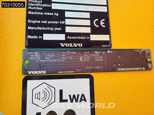 Obtenez un rapport d'inspection détaillé pour 2015 Volvo L120H et achetez en toute tranquillité d'esprit.