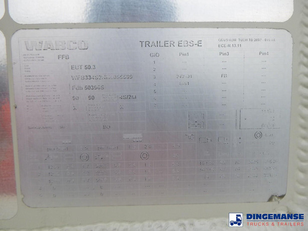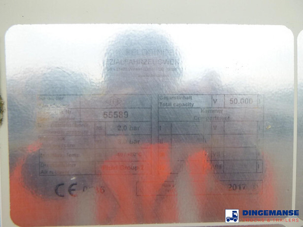 Aluminium powder tank, Capacity 50,000 litres, 1 Compartment, Diesel engine with Hatz compressor, ABS, Air suspension, Disc brakes, Alloy wheels, Jost axls, Shipment dimensions 1220x250x390 cm