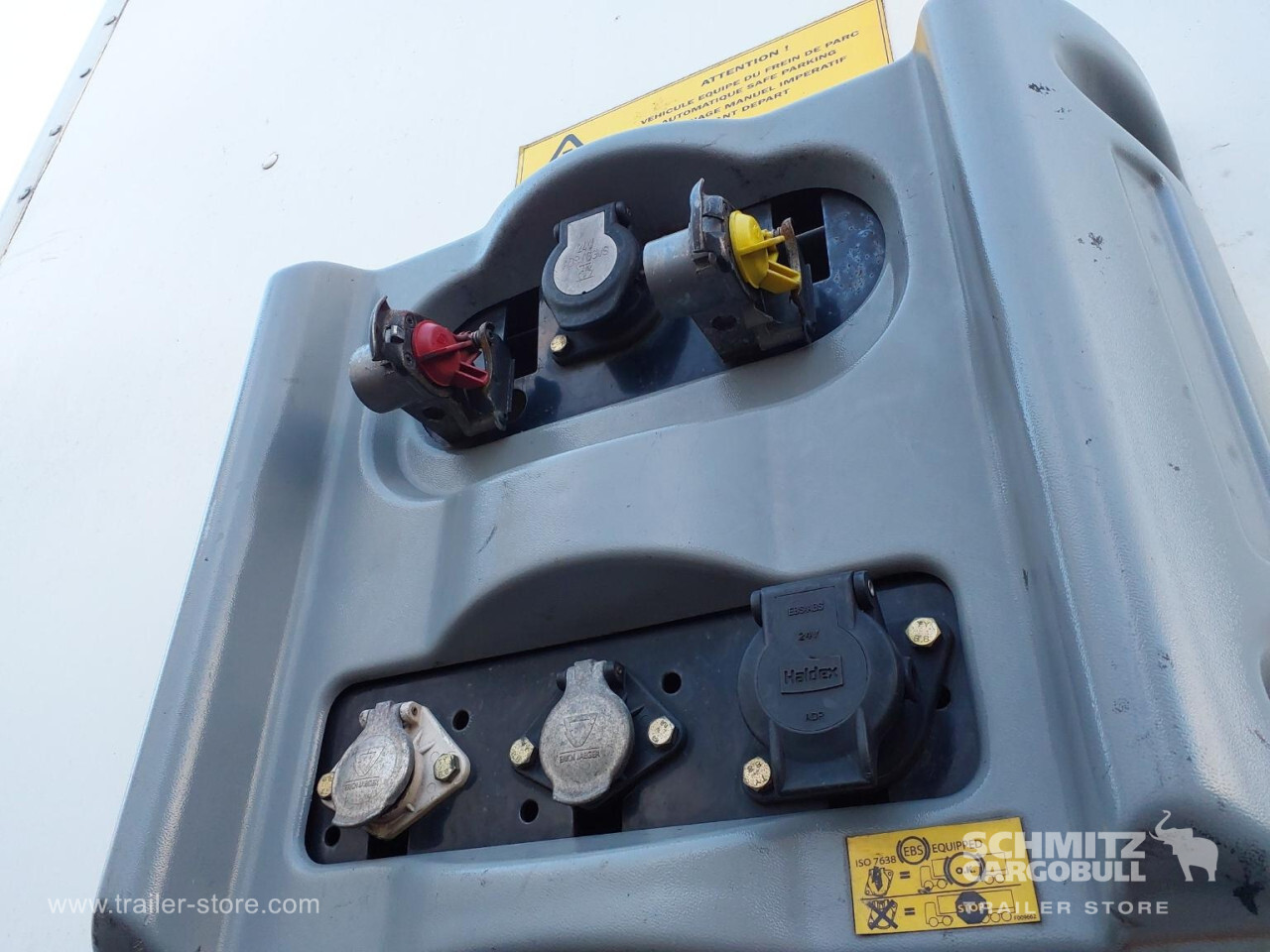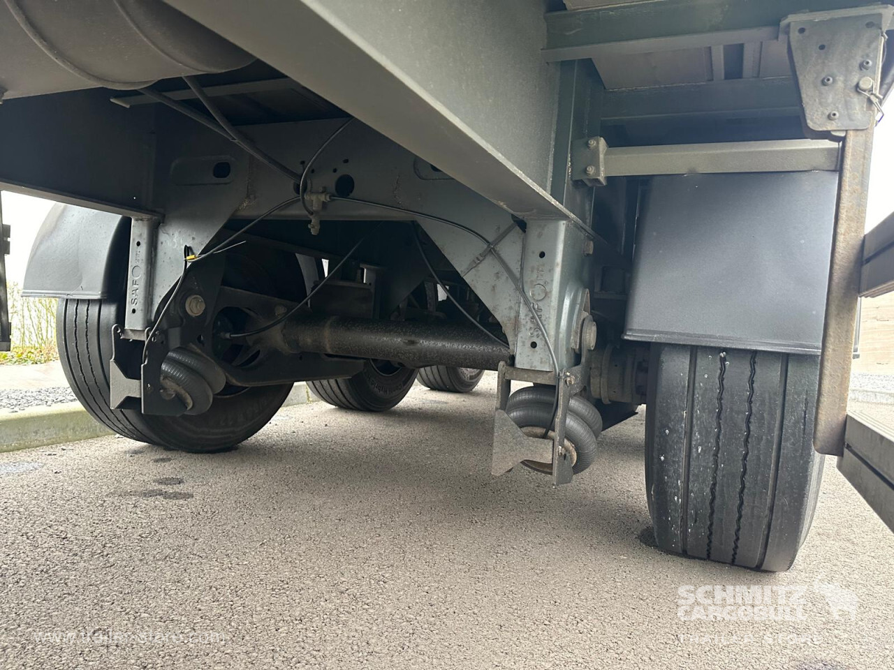 Remarks: **Safety**\\Rear underrun, Antilock Braking System ABS, Hubodometer\\\\**Exterior**\\Air suspension, Lift axle, Roller shutter door, 1x15 and 2x7 pin plug\\\\**Cargo securing**\\Load securing rail\\\\**Brake system**\\Disc brake, SAF\\\\**Floor**\\Wooden floor\\\\**Loading area**\\Length 13.500 mm, Width 2.450 mm, Height 2.600 mm, Volume 85 m³\\\\**Tyre sizes**\\1. Achse: 385/65 R22.5 , Tread depth: 8 mm / 9 mm, 2. Achse: 385/65 R22.5 , Tread depth: 7 mm / 6 mm, 3. Achse: 385/65 R22.5 , Tread depth: 5 mm / 6 mm\\\\**Other dimensions and weights**\\Payload: 31.000 kg, GVW: 39.000 kg\\\\----Disques de frein Essieu 1 reste 44mm Plaquettes usure 40%Disques de frein Essieu 2 reste 41mm Plaquettes usure 50%Disques de frein Essieu 3 reste 38mm Plaquettes usure 50%Mines : -