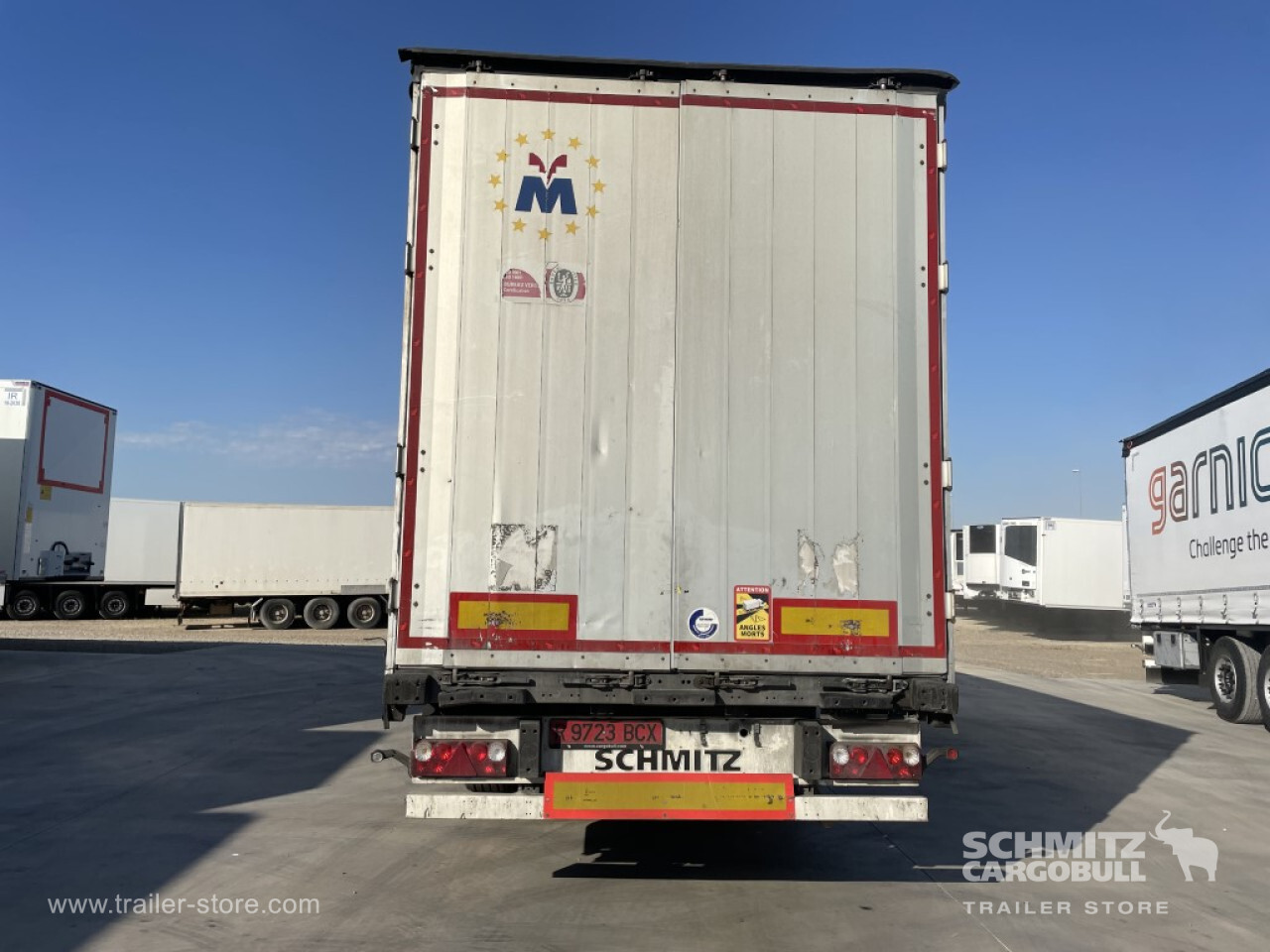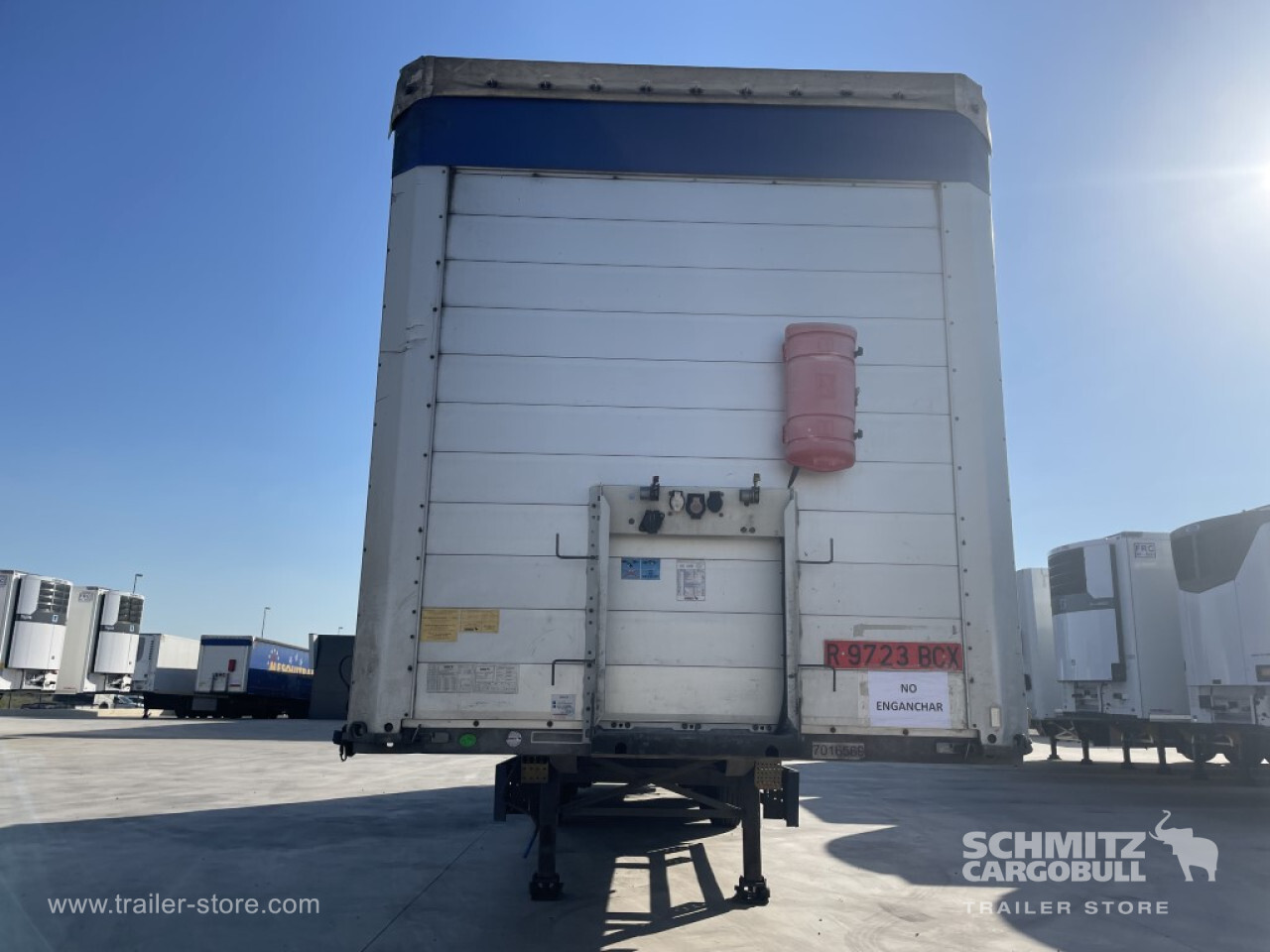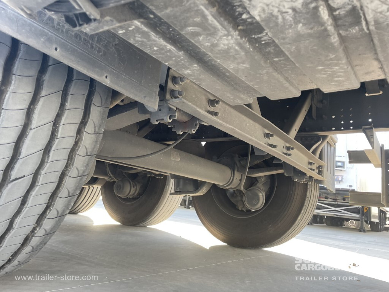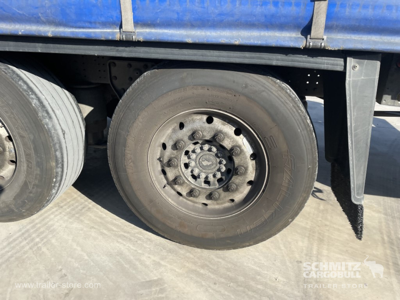 Remarks: **Safety**\\Rear underrun, Antilock Braking System ABS, Fire extinguisher holder, Telematics system\\\\**Exterior**\\Air suspension, Toolbox, Spare wheel carrier double, Bolted chassis, 1x15 and 2x7 pin plug, Antispray, Light alloy rims\\\\**Cargo securing**\\Punched load securing side rave, Wooden - support slats\\\\**Brake system**\\Disc brake, Schmitz ROTOS\\\\**Floor**\\Wooden floor\\\\**Loading area**\\Length 13.620 mm, Width 2.480 mm, Height 2.780 mm, Volume 93 m³\\\\**Tyre sizes**\\1. Achse: 385/65 R22.5 , Tread depth: 11 mm / 14 mm, 2. Achse: 385/65 R22.5 , Tread depth: 2 mm / 2 mm, 3. Achse: 385/65 R22.5 , Tread depth: 14 mm / 12 mm\\\\**Other dimensions and weights**\\GVW: 35.000 kg\\\\----