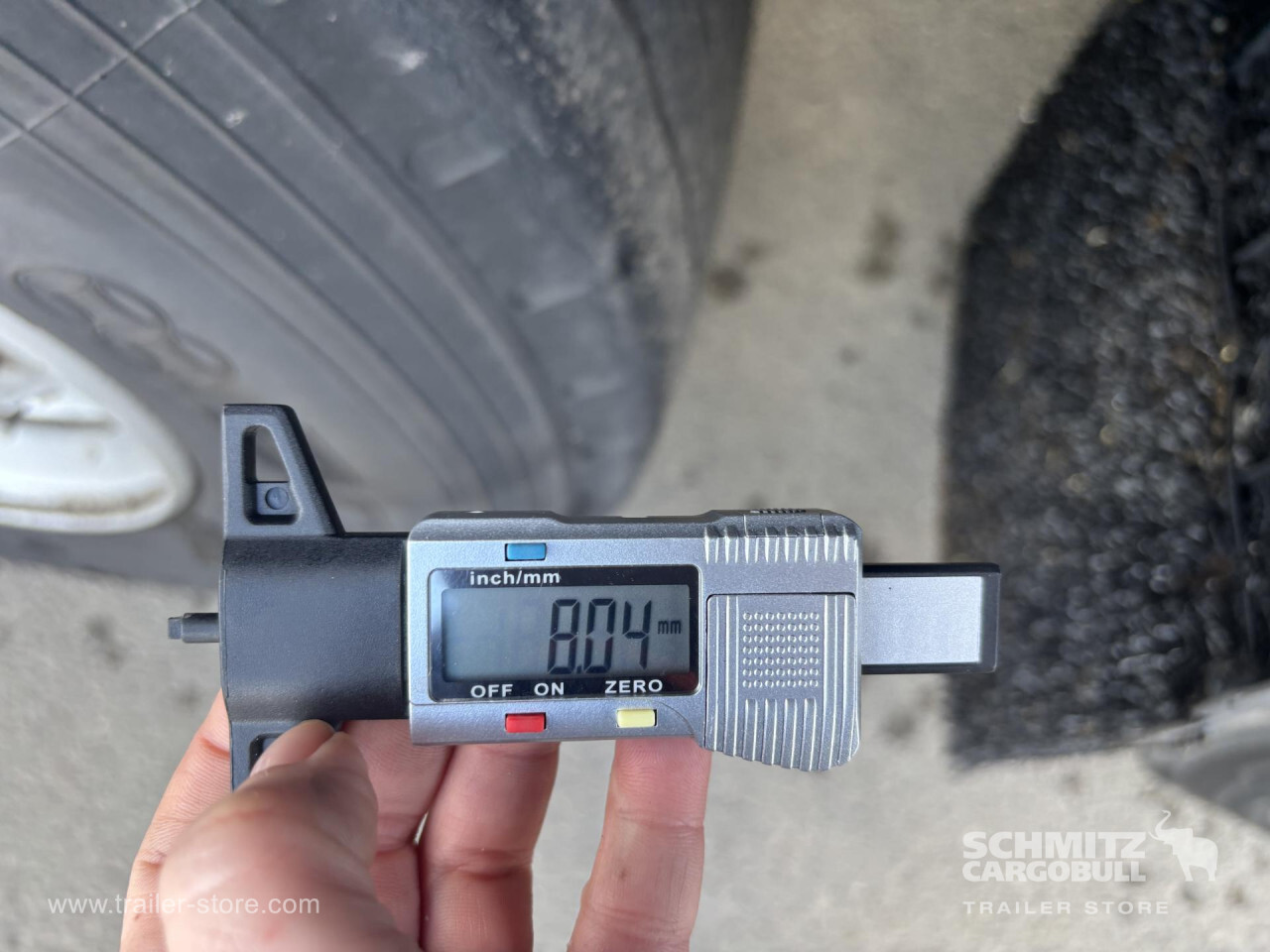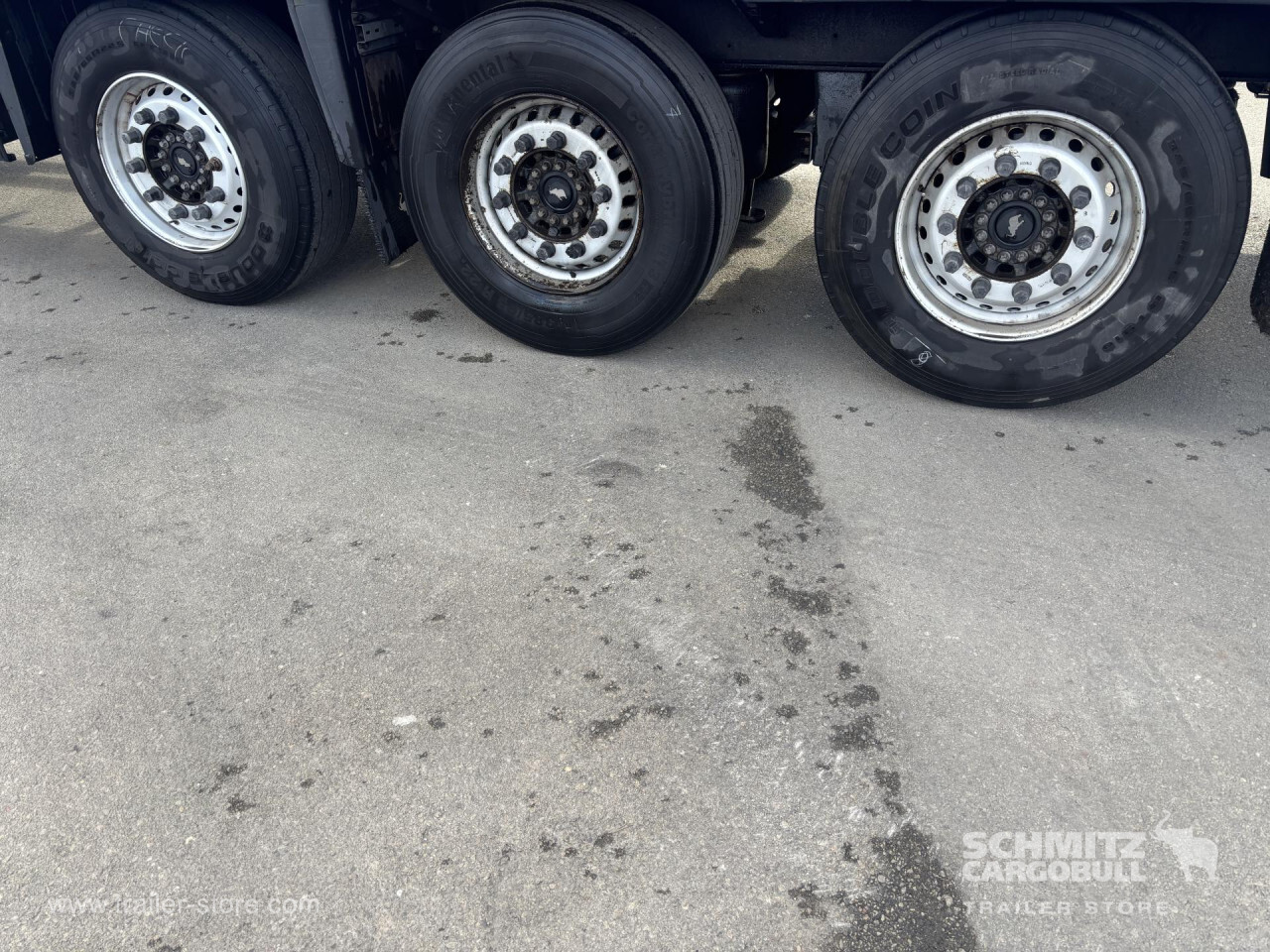 Remarks: **Safety**\\Rear underrun, Antilock Braking System ABS\\\\**Interior**\\Additional stake pockets\\\\**Exterior**\\Air suspension, Toolbox, Spare wheel carrier double, Ferry lashings, Bolted chassis, Sliding roof, 1x15 and 2x7 pin plug, Antispray, Lifting roof (manual)\\\\**Cargo securing**\\DIN EN 12642 (code XL) certificate, Aluminium slats\\\\**Brake system**\\Disc brake, Schmitz ROTOS\\\\**Loading area**\\Length 13.620 mm, Width 2.480 mm, Height 2.700 mm, Volume 91 m³\\\\**Tyre sizes**\\1. Achse: 385/65 R22.5 , Tread depth: 7 mm / 8 mm, 2. Achse: 385/65 R22.5 , Tread depth: 6 mm / 8 mm, 3. Achse: 385/65 R22.5 , Tread depth: 6 mm / 8 mm\\\\**Other dimensions and weights**\\Payload: 31.800 kg, GVW: 39.000 kg, Wheel base: 7.700 mm\\\\----