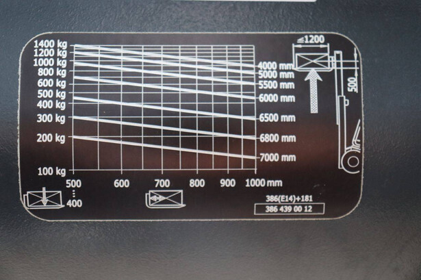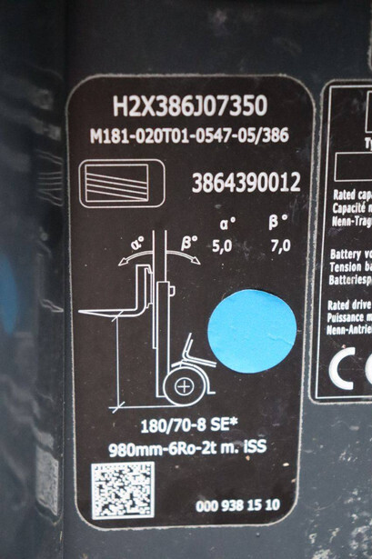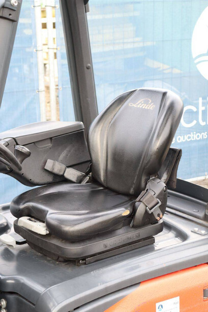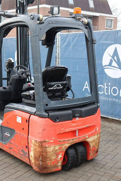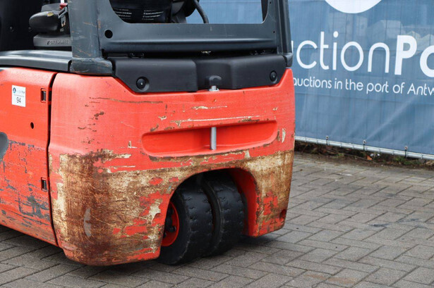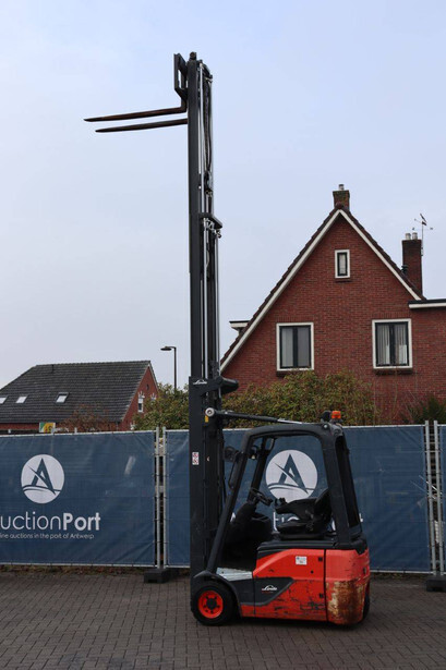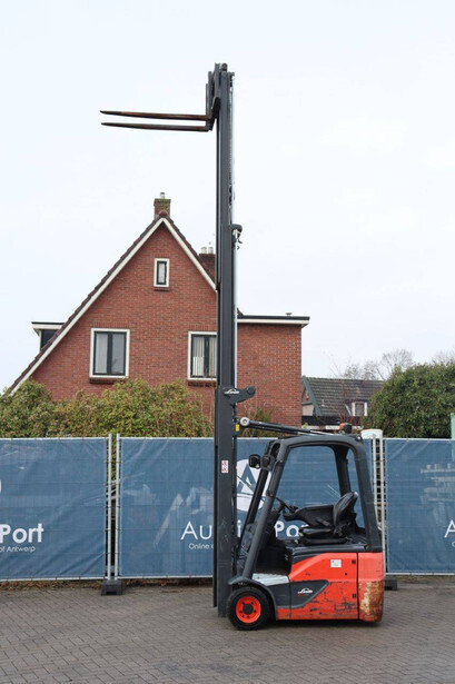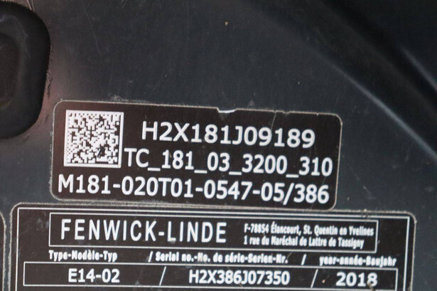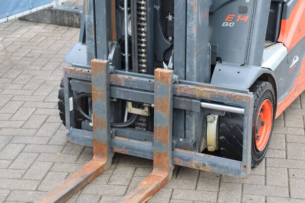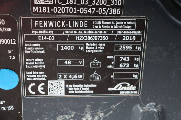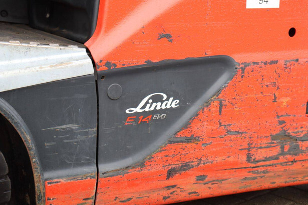 Brand: Linde Type: E14-02 Serial number: H2X386J07350 Year of construction: 2018 Fuel: Electric Mast type: Triplex Sideshift: Yes Lifting capacity: 1400 kg Lifting height: 6000 mm Reading operating hours: 2353 h Machine weight: 3350 kg Tires: Solid tires Color: orange