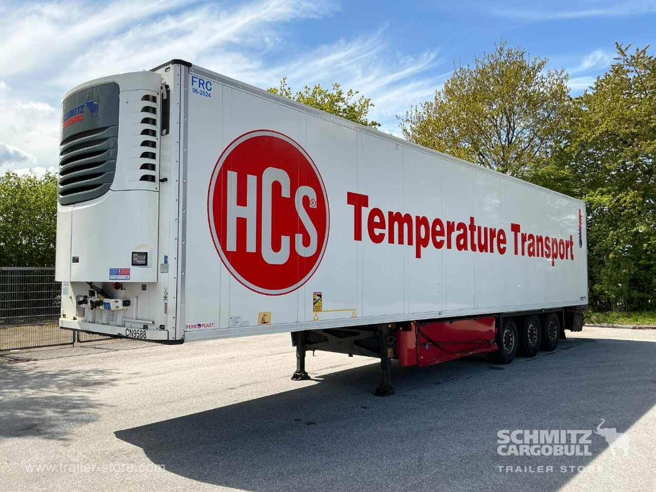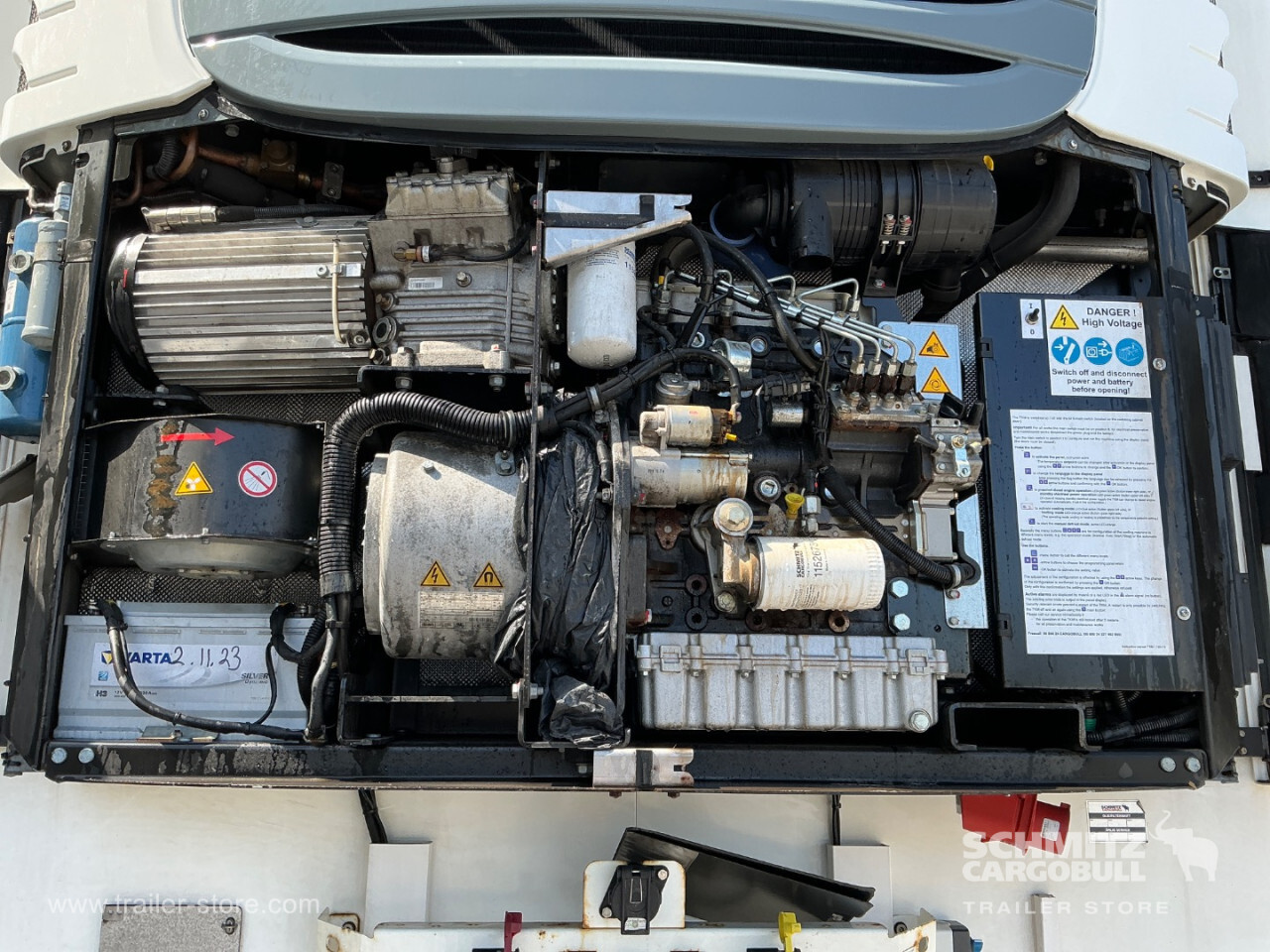 Remarks: **Safety**\\Fixed rear underrun, Antilock Braking System ABS\\\\**Interior**\\Double deck with beams\\\\**Exterior**\\Air suspension, Pallet box (double), Spare wheel carrier, Ferry lashings, 1x15 and 2x7 pin plug, Antispray, Customs sealing capability\\\\**Brake system**\\Disc brake, Schmitz ROTOS\\\\**Floor**\\Aluminum floor\\\\**Cooling unit**\\Schmitz Cargobull, Diesel/Elektro, 2.267 Operating hours Diesel, 919 Operating hours electric\\\\**Loading area**\\Length 13.410 mm, Width 2.490 mm, Height 2.700 mm, Volume 90 m³\\\\**Tyre sizes**\\ 385/65 R22.5 , 385/65 R22.5 , 385/65 R22.5\\\\----