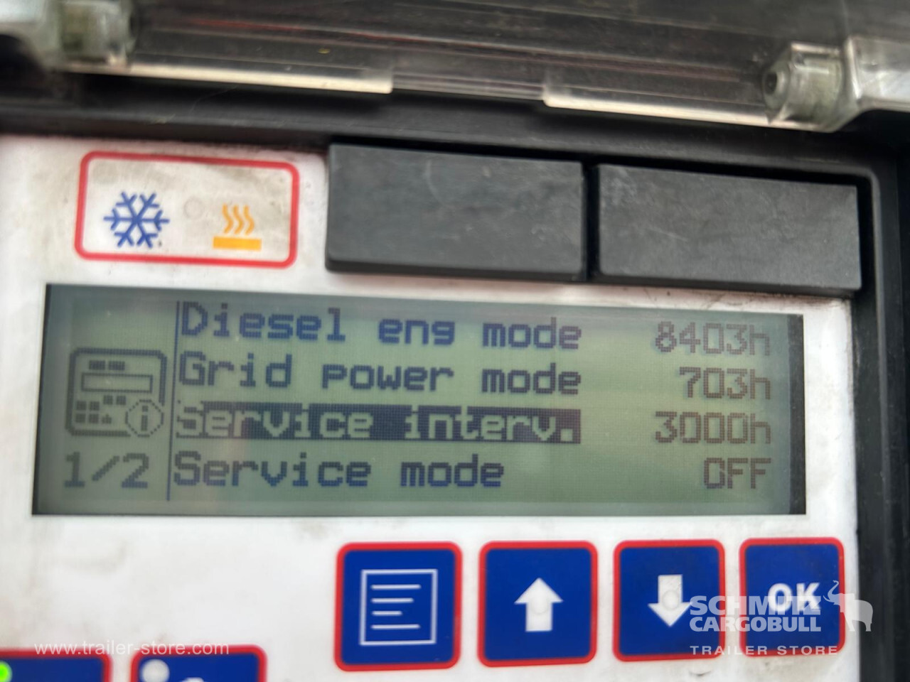 Remarks: **Safety**\\Rear underrun, Antilock Braking System ABS\\\\**Exterior**\\Air suspension, 1x15 and 2x7 pin plug, Antispray\\\\**Cargo securing**\\Load securing rail\\\\**Brake system**\\Disc brake, Schmitz ROTOS\\\\**Floor**\\Aluminum floor\\\\**Roof**\\Aluminum roof\\\\**Cooling unit**\\Schmitz Cargobull, Diesel/Elektro, 8.403 Operating hours Diesel\\\\**Loading area**\\Length 13.410 mm, Width 2.490 mm, Height 2.600 mm, Volume 86 m³\\\\**Tyre sizes**\\ 385/65 R22.5 , 385/65 R22.5 , 385/65 R22.5\\\\**Other dimensions and weights**\\Payload: 30.168 kg, GVW: 39.000 kg, Wheel base: 7.600 mm\\\\----