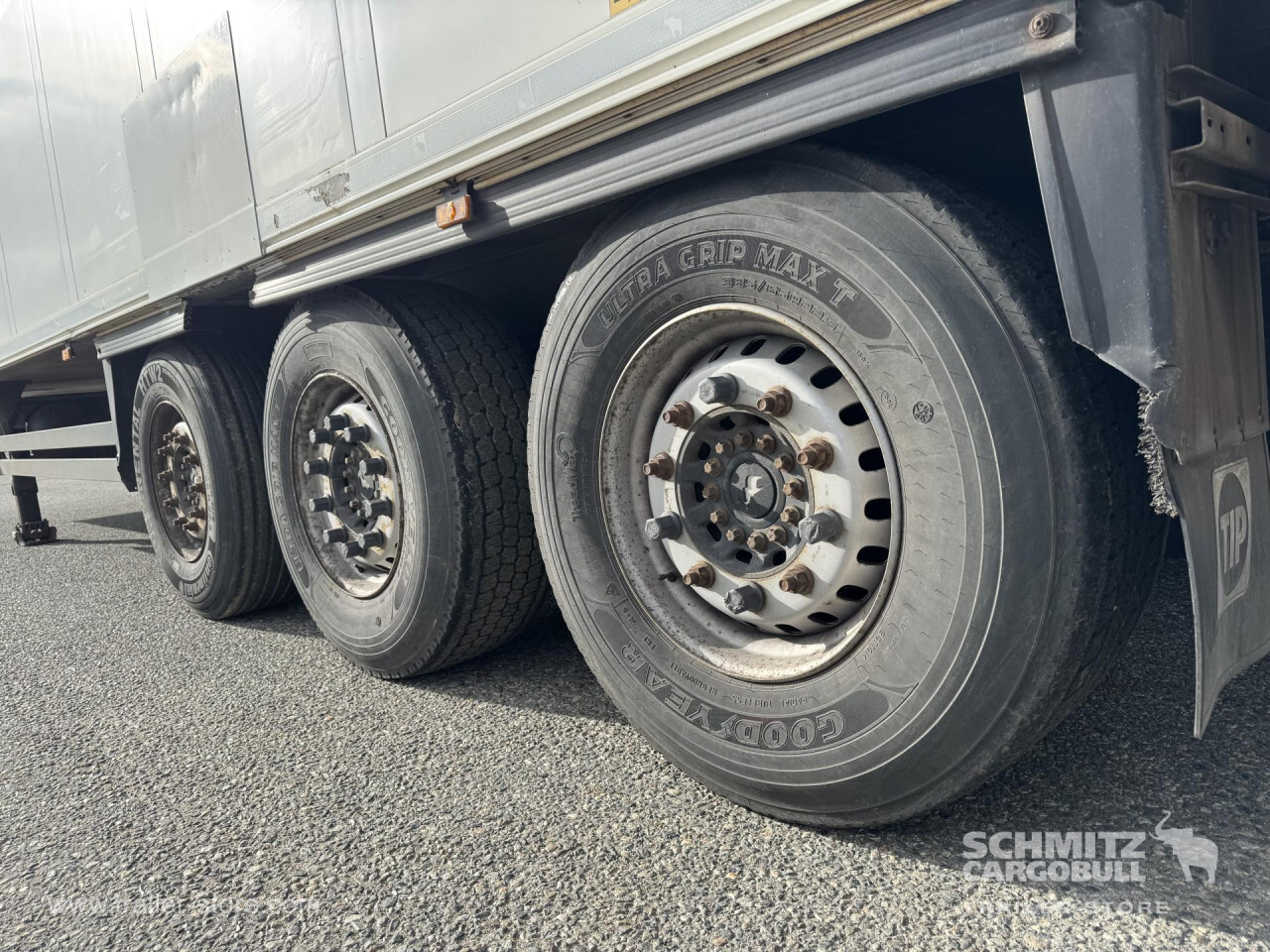 Remarks: **Safety**\\Rear underrun, Antilock Braking System ABS\\\\**Exterior**\\Air suspension, Lift axle, Ferry lashings, 1x15 and 2x7 pin plug, Antispray\\\\**Brake system**\\Disc brake, Schmitz ROTOS\\\\**Cooling unit**\\Thermoking SLXi Spectrum, Diesel/Elektro\\\\**Loading area**\\Length 13.410 mm, Width 2.460 mm, Height 2.750 mm, Volume 90 m³\\\\**Tyre sizes**\\ 385/65 R22.5 , 385/65 R22.5 , 385/65 R22.5\\\\**Other dimensions and weights**\\Payload: 31.570 kg, GVW: 42.000 kg, Wheel base: 810 mm\\\\----Thermo King cooling unit, 410 external 275 internal height, 18t king pin, 810 wheelbaseMOT/PKK 01.02.2026