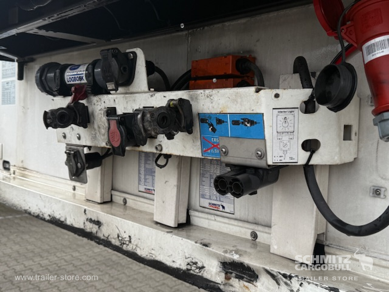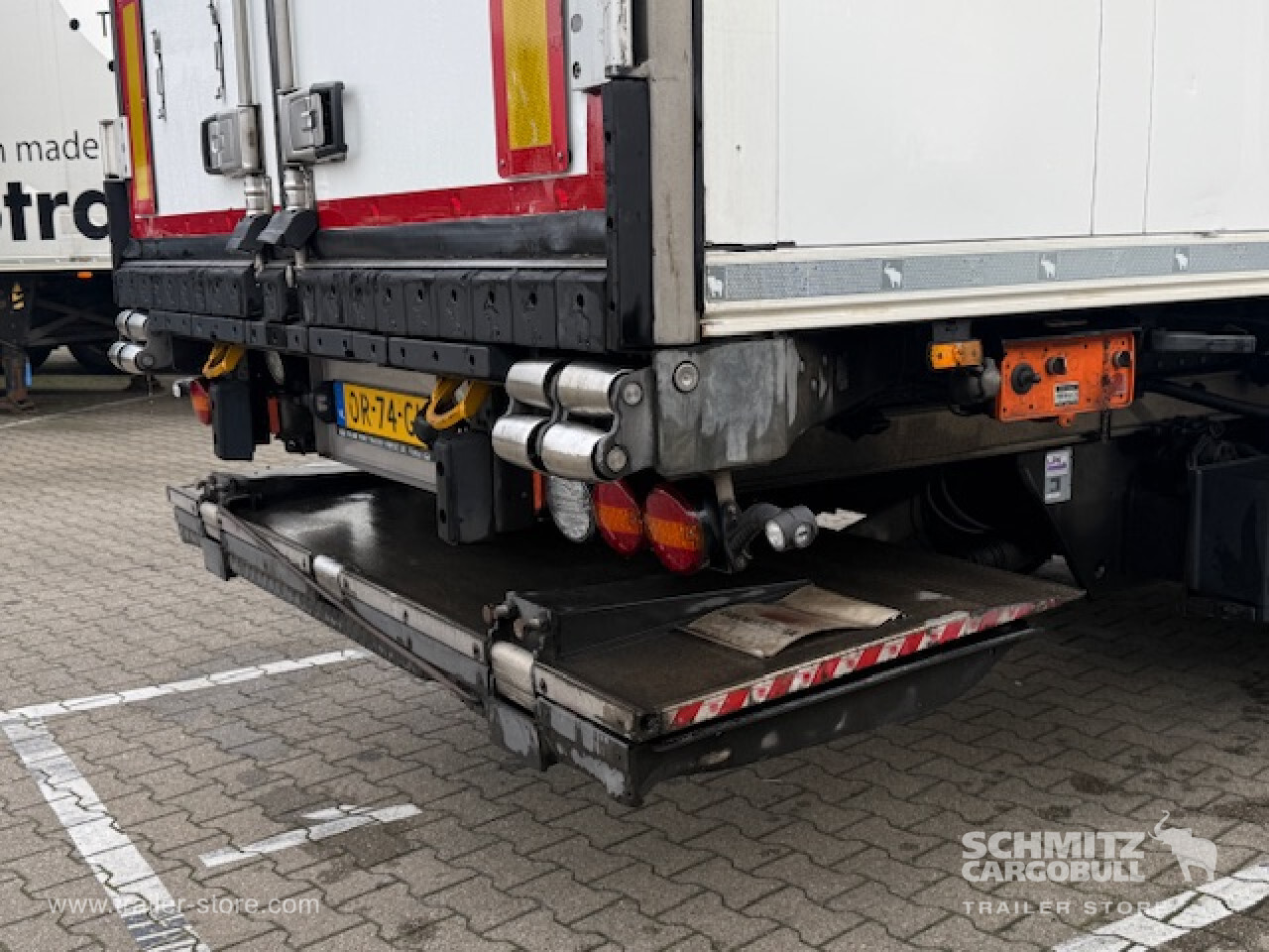 Remarks: **Safety**\\Rear underrun, Antilock Braking System ABS\\\\**Exterior**\\Air suspension, Lift axle front and rear, Pallet box, Ferry lashings, 1x15 and 2x7 pin plug, Antispray, Dynamic ramp protection (DRP)\\\\**Cargo securing**\\Cargo securing with certificate, DIN EN 12642 (code XL) certificate, Load securing rail\\\\**Brake system**\\Disc brake, Andere\\\\**Wall**\\Wall thickness45 mm\\\\**Cooling unit**\\Carrier Vector 1550, Diesel/Elektro, 20.736 Operating hours Diesel, 8.051 Operating hours electric\\\\**Loading area**\\Length 13.410 mm, Width 2.490 mm, Height 2.650 mm, Volume 88 m³\\\\**Tyre sizes**\\ 385/65 R22.5 , 385/65 R22.5 , 385/65 R22.5\\\\----