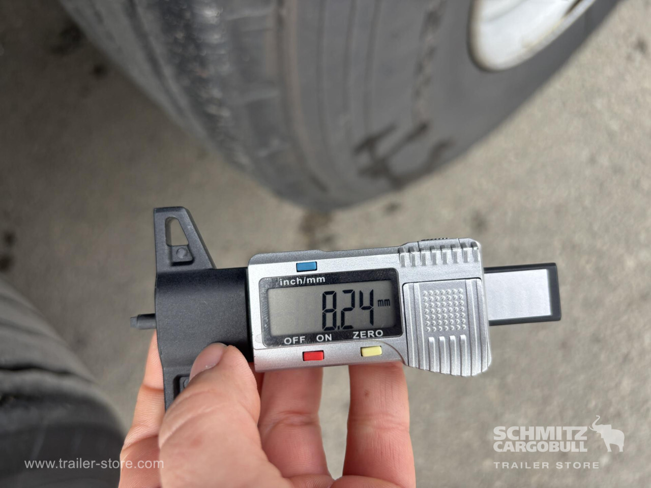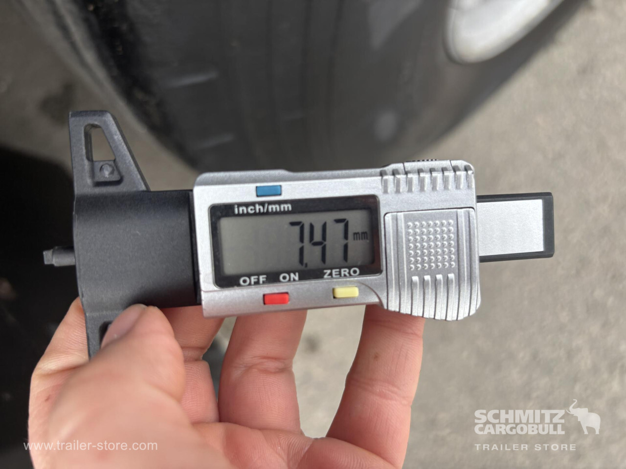 Remarks: **Safety**\\Rear underrun, Antilock Braking System ABS\\\\**Interior**\\Additional stake pockets\\\\**Exterior**\\Air suspension, Toolbox, Spare wheel carrier double, Ferry lashings, Bolted chassis, Sliding roof, 1x15 and 2x7 pin plug, Antispray\\\\**Cargo securing**\\DIN EN 12642 (code XL) certificate, Aluminium slats\\\\**Brake system**\\Disc brake, Schmitz ROTOS\\\\**Loading area**\\Length 13.620 mm, Width 2.480 mm, Height 2.730 mm, Volume 92 m³\\\\**Tyre sizes**\\1. Achse: 385/65 R22.5 , Tread depth: 6 mm / 6 mm, 2. Achse: 385/65 R22.5 , Tread depth: 9 mm / 7 mm, 3. Achse: 385/65 R22.5 , Tread depth: 9 mm / 8 mm\\\\**Other dimensions and weights**\\Payload: 31.567 kg, GVW: 39.000 kg, Wheel base: 7.700 mm\\\\----