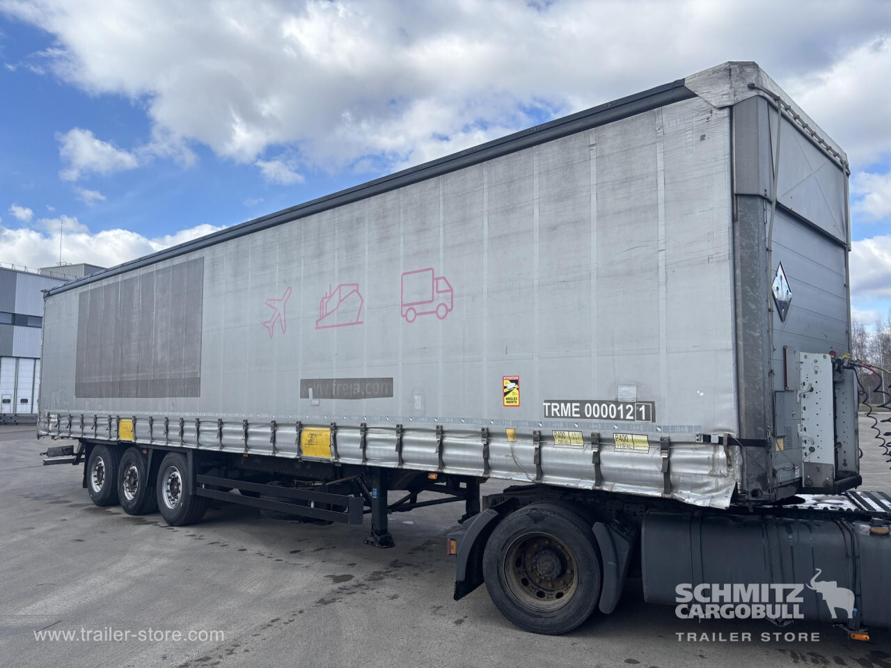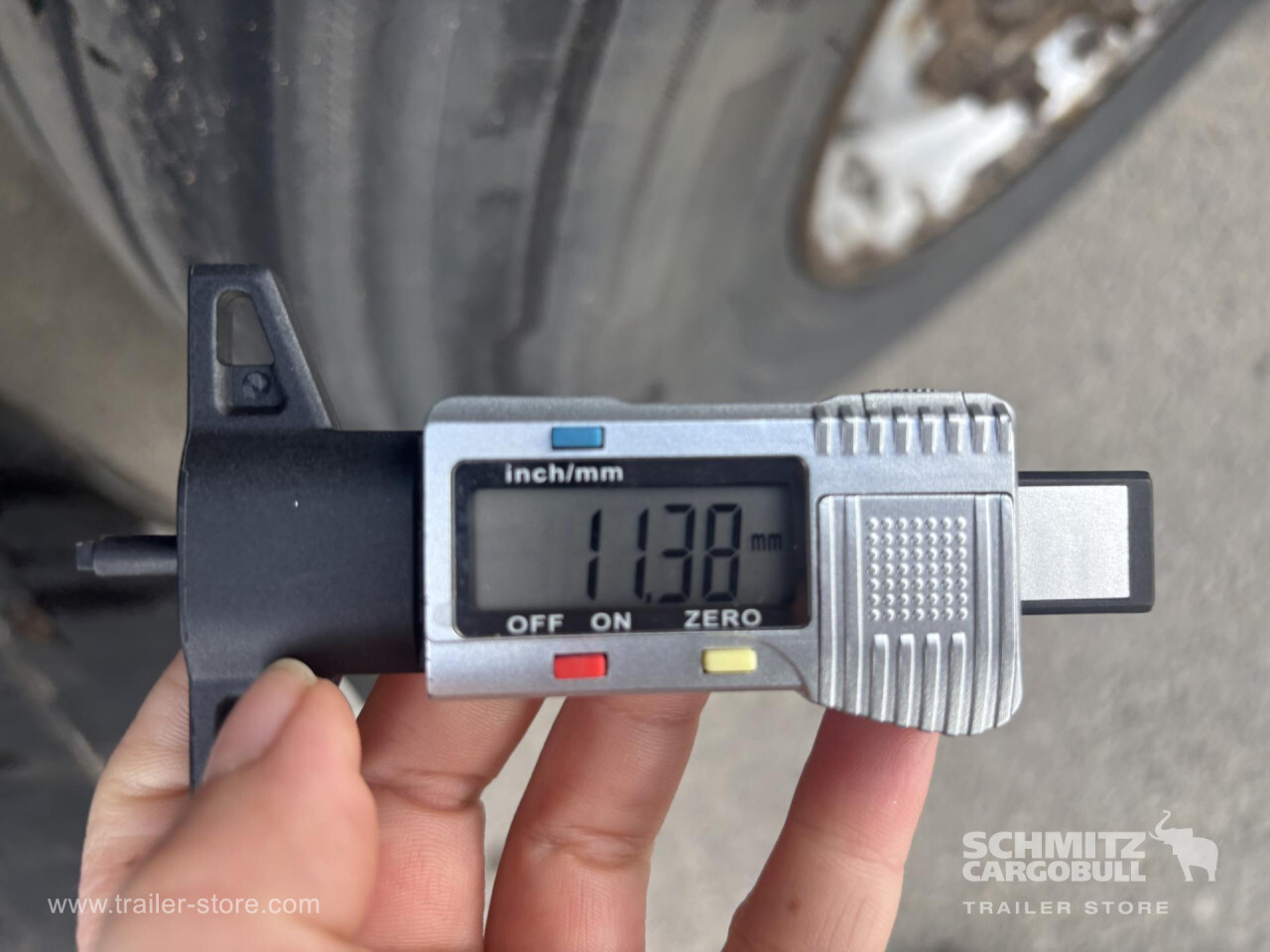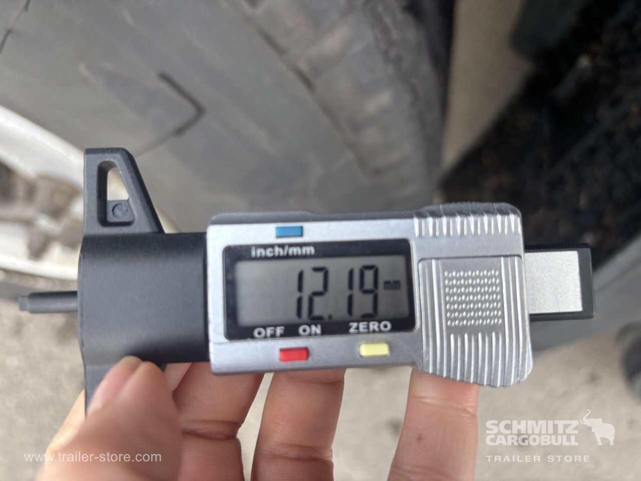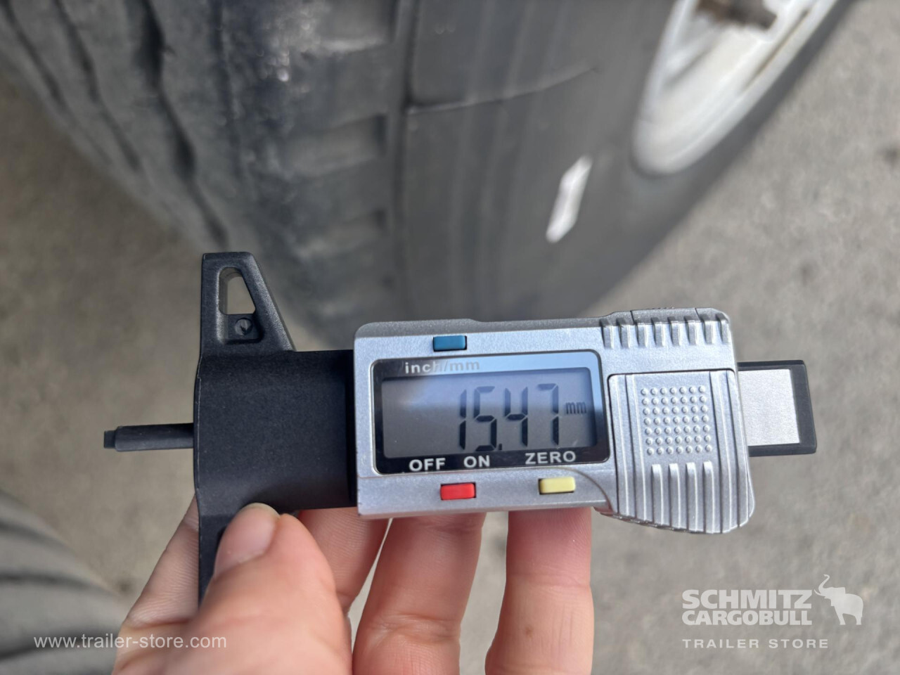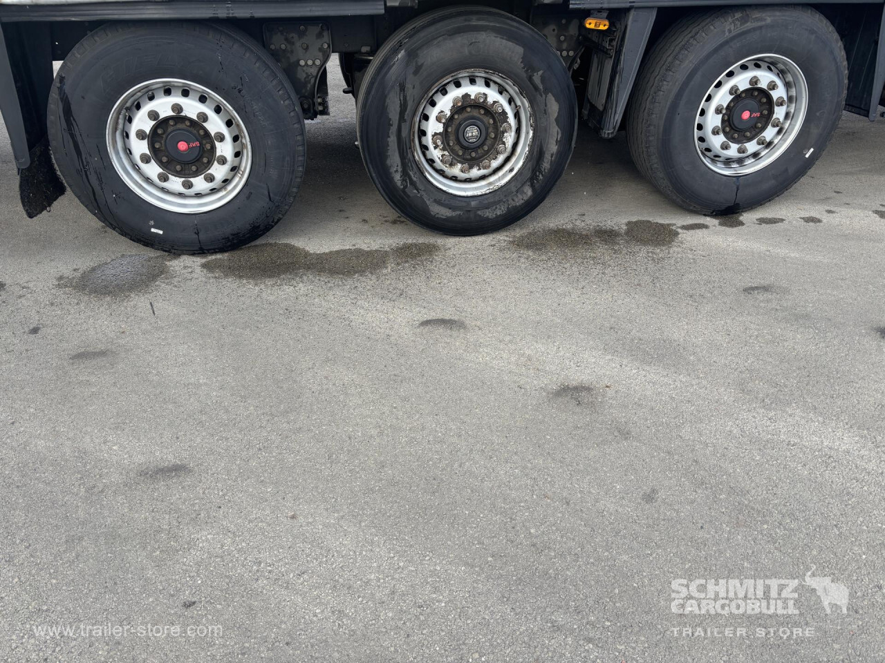Remarks: **Safety**\\Rear underrun, Antilock Braking System ABS\\\\**Interior**\\Additional stake pockets\\\\**Exterior**\\Air suspension, Toolbox, Spare wheel carrier double, Ferry lashings, Bolted chassis, Sliding roof, 1x15 and 2x7 pin plug, Antispray, Lifting roof (manual)\\\\**Cargo securing**\\DIN EN 12642 (code XL) certificate, Aluminium slats\\\\**Brake system**\\Disc brake, SAF\\\\**Loading area**\\Length 13.620 mm, Width 2.480 mm, Height 2.700 mm, Volume 91 m³\\\\**Tyre sizes**\\1. Achse: 385/65 R22.5 , Tread depth: 12 mm / 12 mm, 2. Achse: 385/65 R22.5 , Tread depth: 11 mm / 11 mm, 3. Achse: 385/65 R22.5 , Tread depth: 15 mm / 15 mm\\\\**Other dimensions and weights**\\Payload: 31.681 kg, GVW: 39.000 kg, Wheel base: 7.700 mm\\\\----