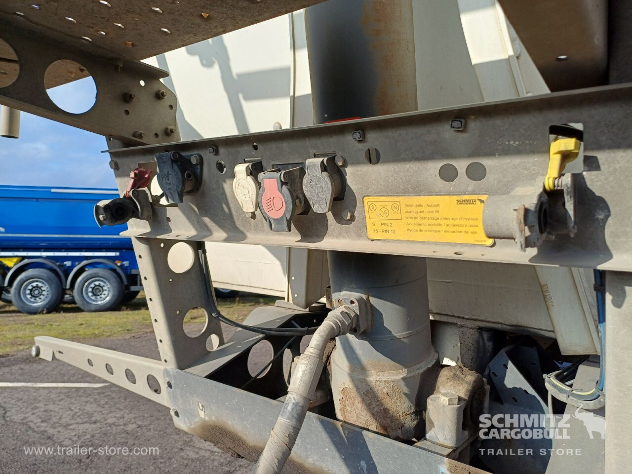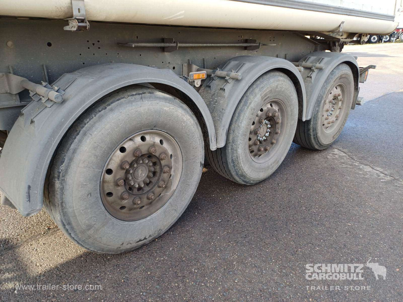 Remarks: **Safety**\\Hinged rear underrun, Antilock Braking System ABS\\\\**Exterior**\\Air suspension, Lift axle front, Exterior pendulum tailgate, Roof rolling tarpaulin, Access platform, 1x15 and 2x7 pin plug, Antispray, Light alloy rims\\\\**Brake system**\\Disc brake, Schmitz ROTOS\\\\**Loading area**\\Length 7.500 mm, Width 2.440 mm, Height 1.350 mm, Volume 24 m³\\\\**Tyre sizes**\\1. Achse: 385/65 R22.5 , Tread depth: 8 mm / 9 mm, 2. Achse: 385/65 R22.5 , Tread depth: 10 mm / 12 mm, 3. Achse: 385/65 R22.5 , Tread depth: 8 mm / 7 mm\\\\**Other dimensions and weights**\\GVW: 36.000 kg\\\\----
