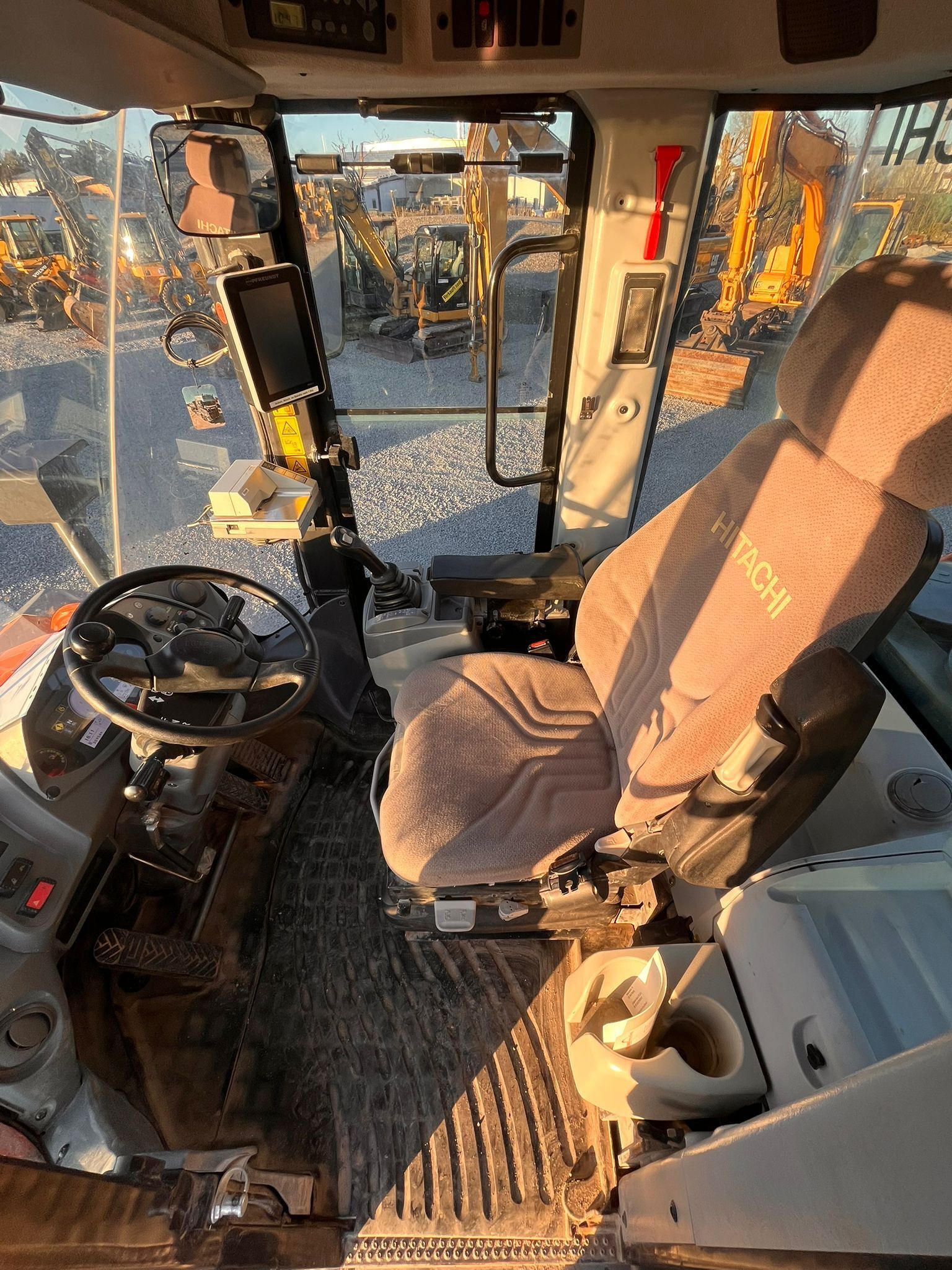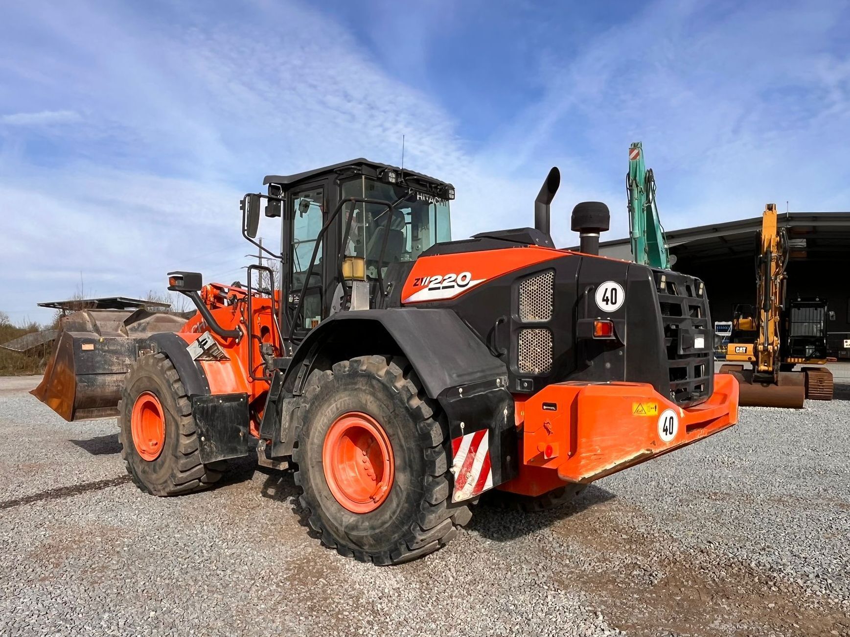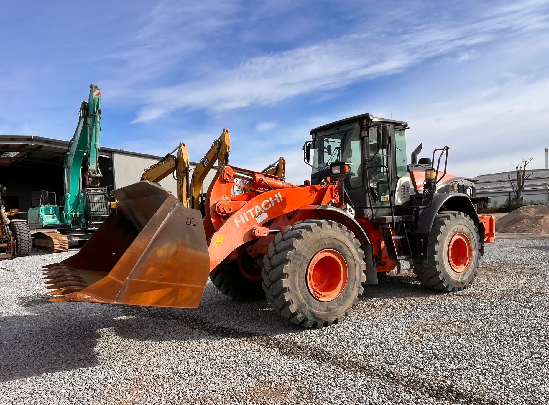 Hitachi ZW220-6 Weight around ca 18,170 kg Engine / Type Cummins QSB6.7 Power / HP / KW 202 / 149 Emission standard IV Tires / type / size 23.5 R25 Michelin *front in % good ca 70% good *back in % good ca 70% good Speed 40 km/h shove (capacity approx. / type) ca 3.3 m3 Aircondition Aircondition Central lubrication Central lubrication CE-certificate Original CE Location Plattling, Germany Transport-dimensions L/W/H 8,300 x 2,910 x 3,370mm other details Pfreundt scales with printer