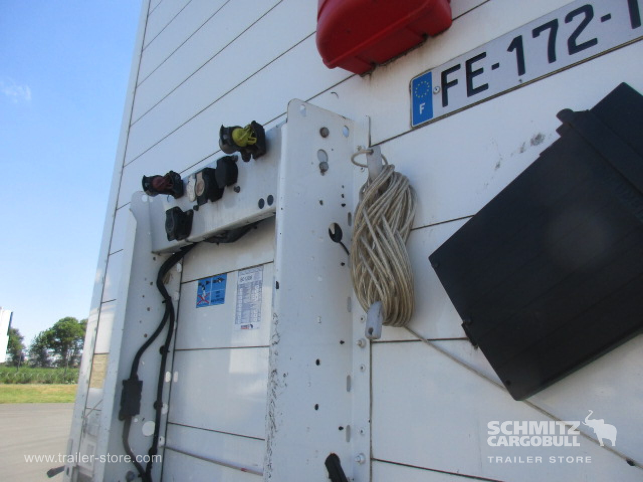 Remarks: **Safety**\\Rear underrun, Antilock Braking System ABS, Fire extinguisher holder, Hubodometer, Telematics system\\\\**Exterior**\\Air suspension, Pallet box, Taillift: Dhollandia + Telecommande, Toolbox, Spare wheel carrier double, Bolted chassis, Barn doors, Sliding roof, 1x15 and 2x7 pin plug, Antispray, Customs sealing capability, Stowage box\\\\**Cargo securing**\\DIN EN 12642 (code XL) certificate, Punched load securing side rave, Load securing holes under the roof, Aluminium slats\\\\**Brake system**\\Disc brake, Schmitz Cargobull\\\\**Floor**\\Wisadeck floor, Lashing rings in floor\\\\**Loading area**\\Length 13.620 mm, Width 2.480 mm, Height 2.780 mm, Volume 93 m³\\\\**Tyre sizes**\\1. Achse: 385/65 R22.5 , Tread depth: 4 mm / 5 mm, 2. Achse: 385/65 R22.5 , Tread depth: 7 mm / 6 mm, 3. Achse: 385/65 R22.5 , Tread depth: 6 mm / 6 mm\\\\**Other dimensions and weights**\\GVW: 38.000 kg\\\\----