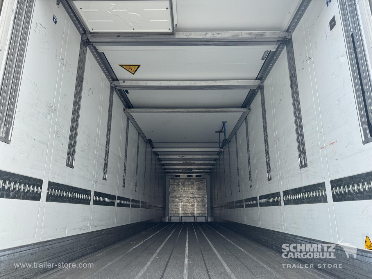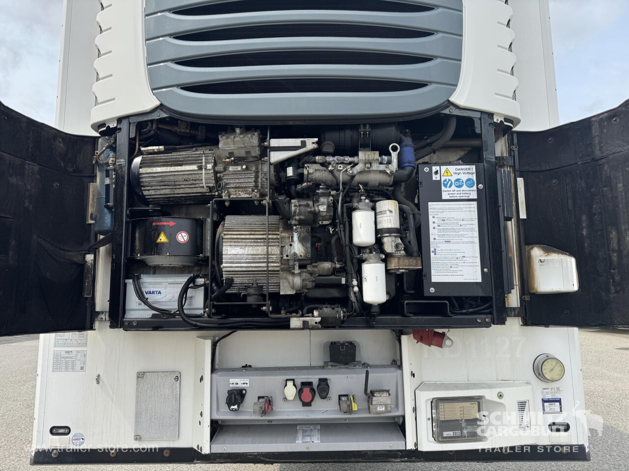 **Safety**\\Rear underrun, Antilock Braking System ABS\\\\**Exterior**\\Air suspension, 1x15 and 2x7 pin plug, Antispray\\\\**Cooling unit**\\Schmitz Cargobull S.CU mt V 2.0, Diesel/Elektro, 15.030 Operating hours Diesel, 63 Operating hours electric\\\\**Loading area**\\Length 13.403 mm, Width 2.490 mm, Height 2.700 mm, Volume 90 m³\\\\**Tyre sizes**\\ 385/65 R22.5 , 385/65 R22.5 , 385/65 R22.5\\\\**Other dimensions and weights**\\Wheel base: 8.100 mm\\\\----410 External / 270 internal height18t King pin810 wheelbaseSchmitz Cooling unitDiesel hrs: 15.030El.: 63MOT/PKK 17.9.25