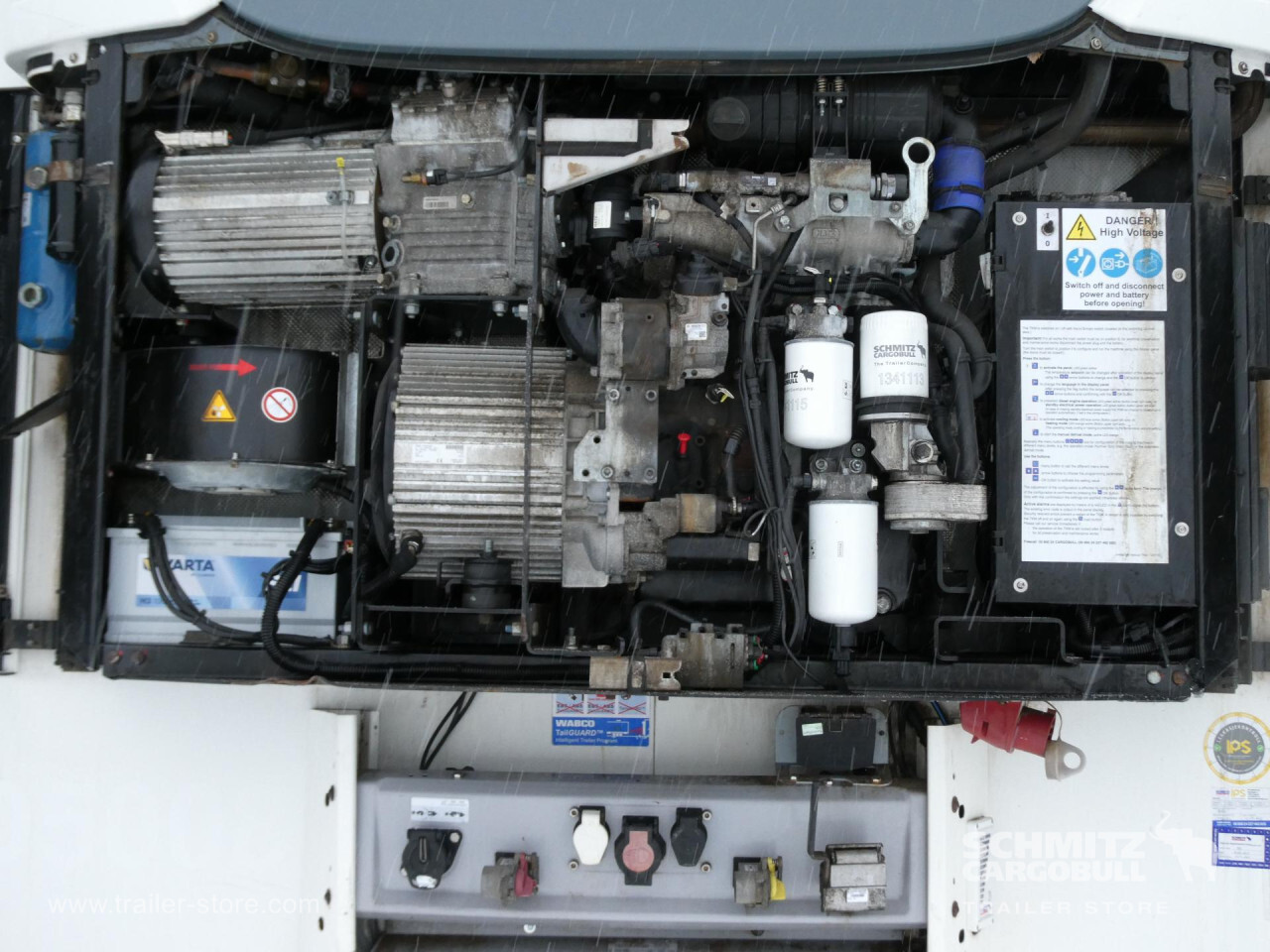 Remarks: **Safety**\\Rear underrun, Antilock Braking System ABS, Telematics system\\\\**Interior**\\Double deck\\\\**Exterior**\\Air suspension, Lift axle, Ferry lashings, 1x15 and 2x7 pin plug, Antispray, Hooklift\\\\**Cargo securing**\\Load securing rail\\\\**Brake system**\\Disc brake, Schmitz ROTOS\\\\**Cooling unit**\\Schmitz Cargobull S.CU V 2.0, Diesel/Elektro, 9.549 Operating hours Diesel, 1.000 Operating hours electric\\\\**Loading area**\\Length 13.403 mm, Width 2.490 mm, Height 2.650 mm, Volume 88 m³\\\\**Tyre sizes**\\1. Achse: 385/65 R22.5 , Tread depth: 11 mm / 11 mm, 2. Achse: 385/65 R22.5 , Tread depth: 10 mm / 11 mm, 3. Achse: 385/65 R22.5 , Tread depth: 11 mm / 10 mm\\\\**Other dimensions and weights**\\Payload: 33.124 kg, GVW: 42.000 kg, Wheel base: 8.100 mm\\\\----Schmitz Cooling unit, 405 external , 265 internal height, 18t king pin, 8100mm wheelbase,MOT/PKK 5/7/26WSM00000005228256Internal ref.: 5494718
