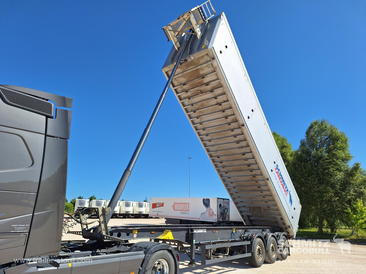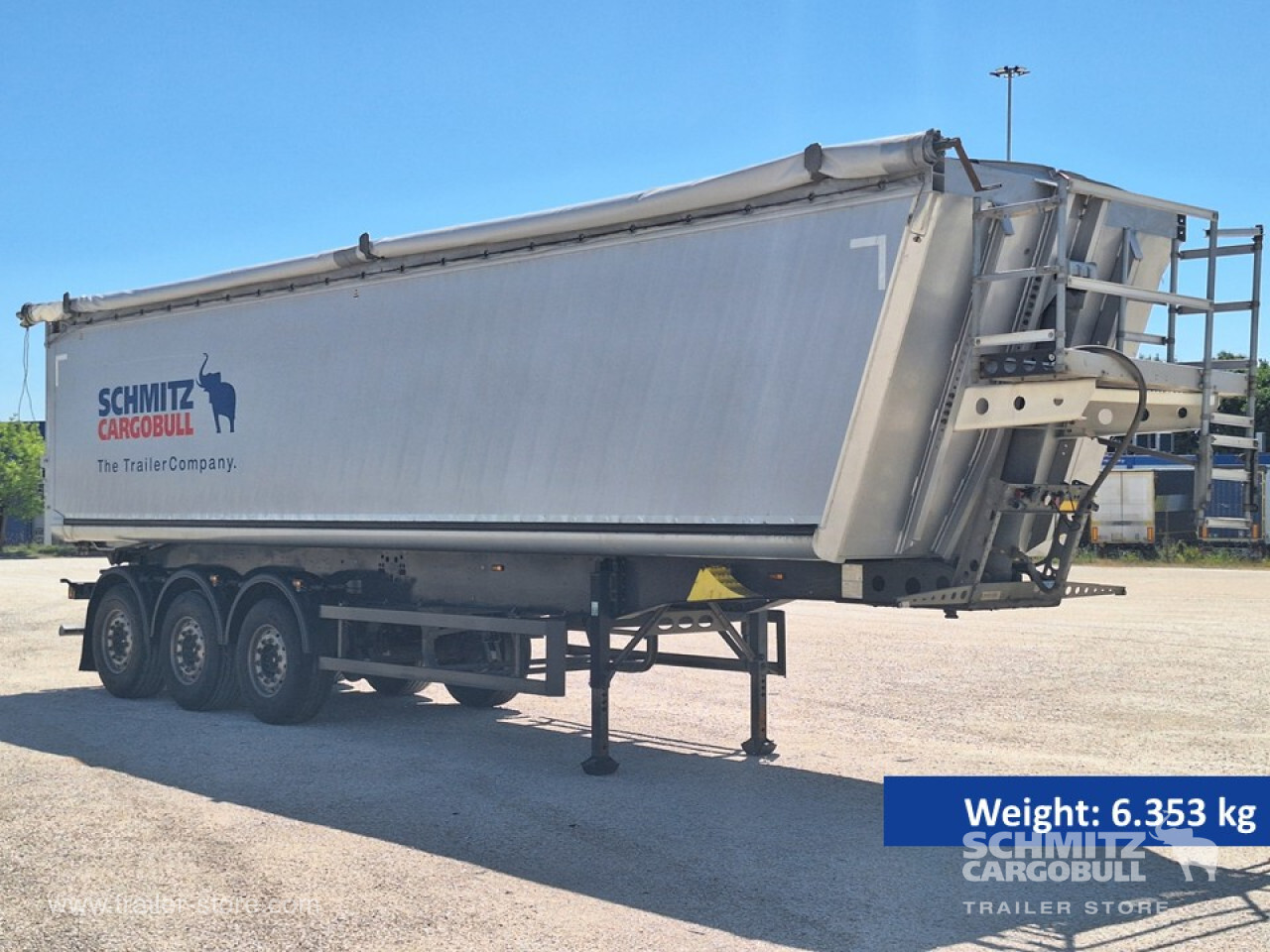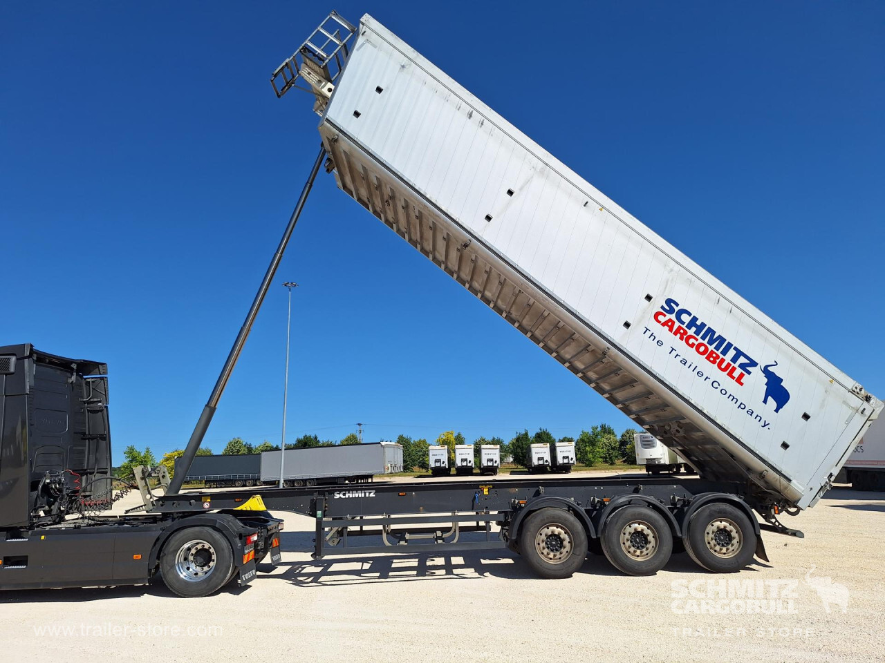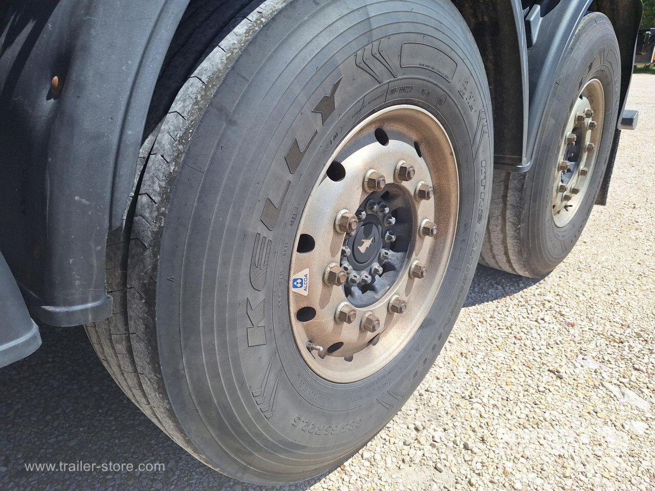 Remarks: **Safety**\\Rear underrun, Antilock Braking System ABS\\\\**Exterior**\\Air suspension, Lift axle front, Tipping hydraulic, Self-levelling suspension, Spare wheel carrier, Rear door as tilt, Grain chute, Roof rolling tarpaulin, Access platform, Hydraulic cylinder (high pressure), 1x15 and 2x7 pin plug, Antispray, Light alloy rims 22 inch, Axle load indicator\\\\**Brake system**\\Disc brake, Schmitz ROTOS\\\\**Wall**\\Wall thickness4 mm\\\\**Loading area**\\Length 10.540 mm, Width 2.440 mm, Height 2.100 mm, Volume 54 m³\\\\**Tyre sizes**\\1. Achse: 385/65 R22.5 , Tread depth: 7 mm / 7 mm, 2. Achse: 385/65 R22.5 , Tread depth: 12 mm / 12 mm, 3. Achse: 385/65 R22.5 , Tread depth: 12 mm / 12 mm\\\\----